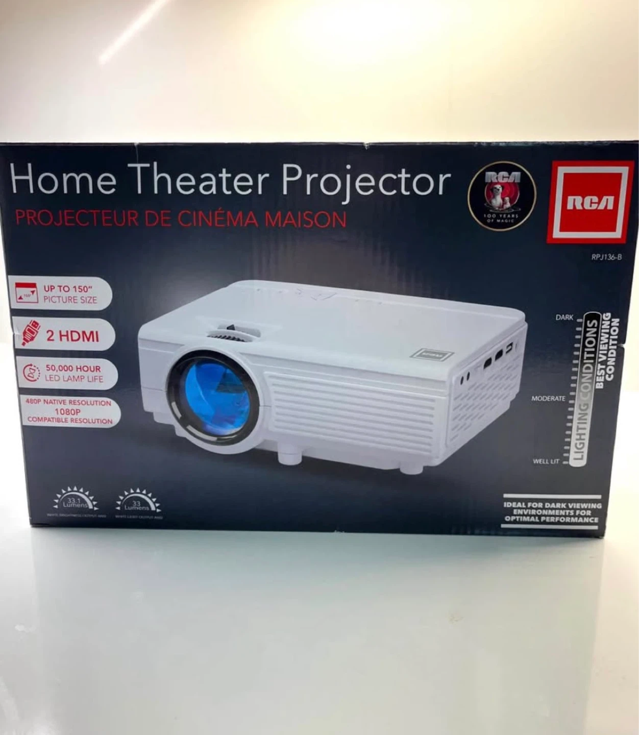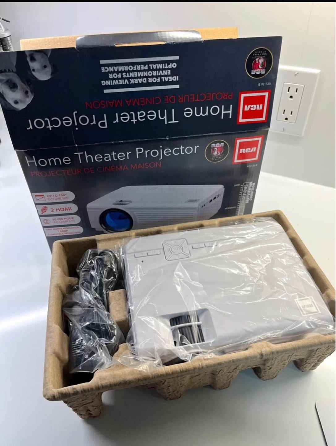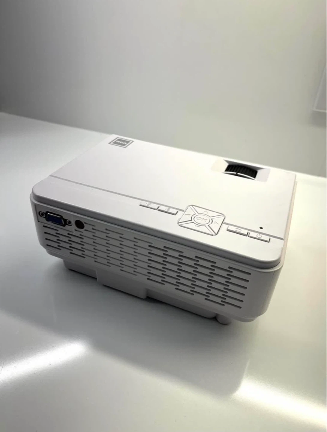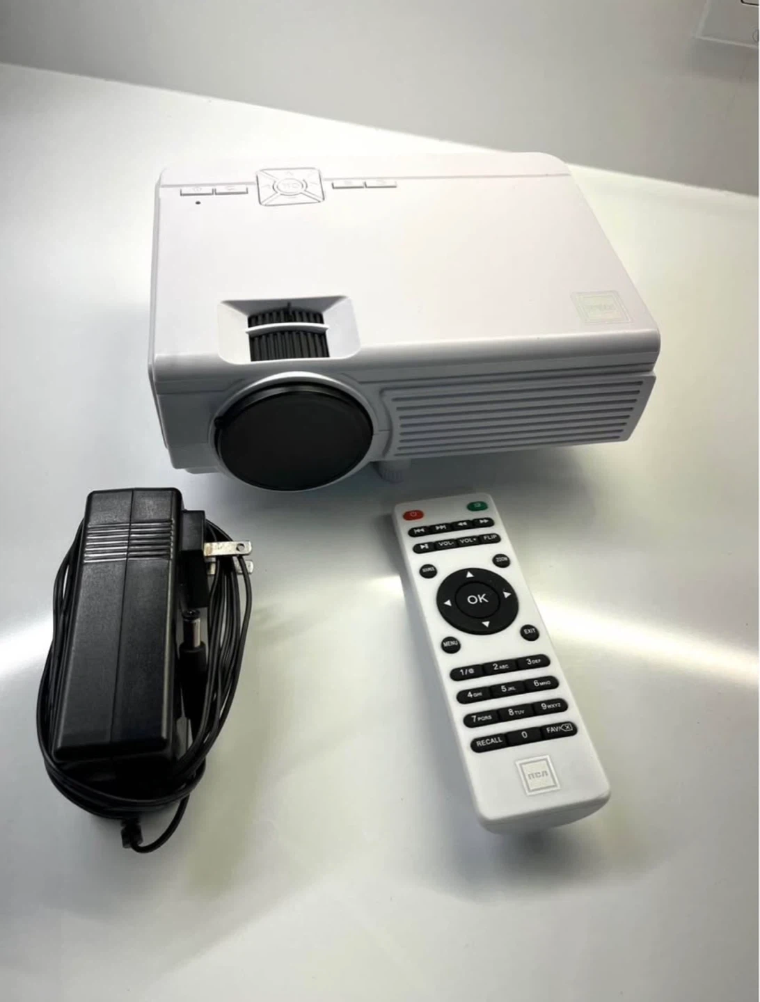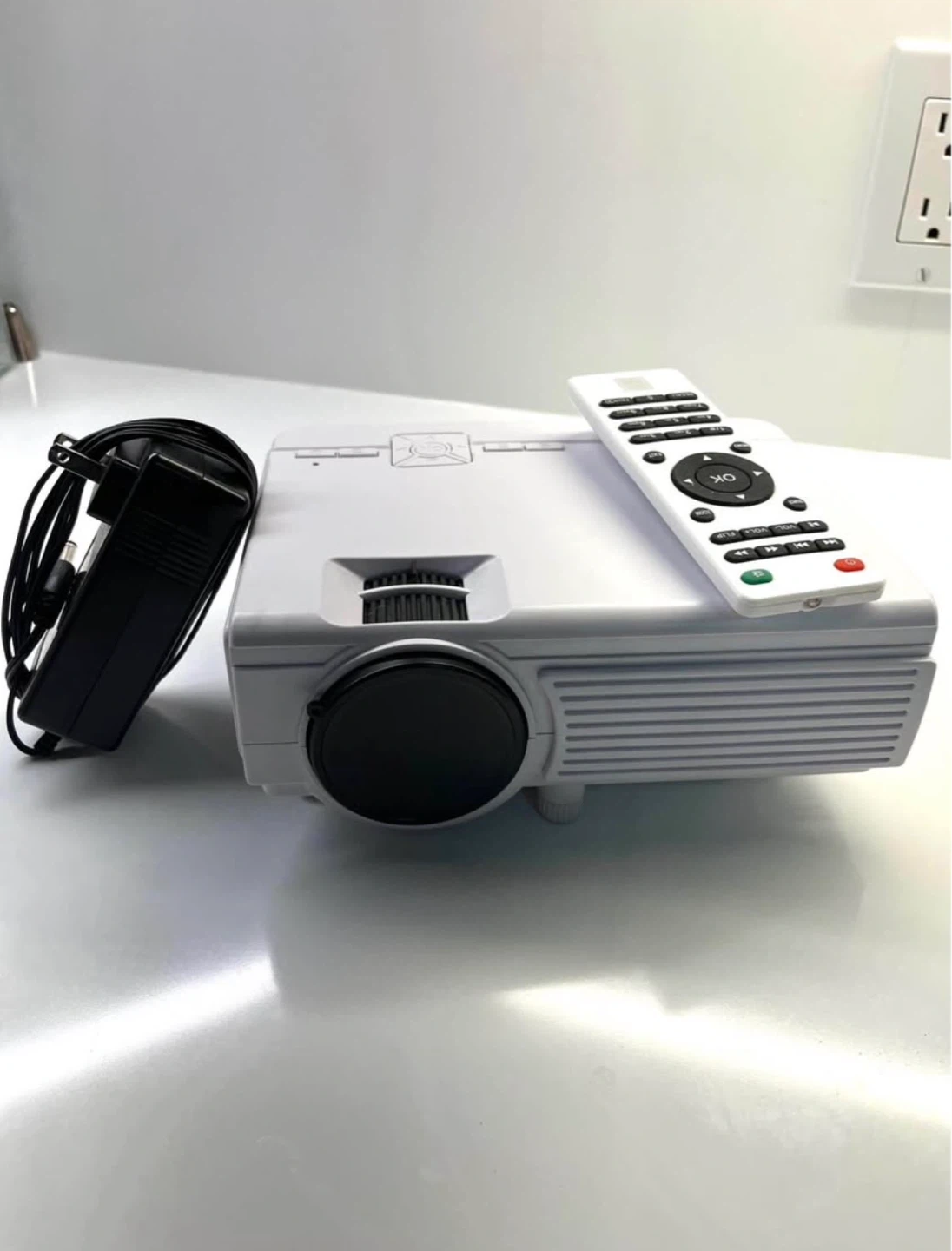 It comes with the projector, projector lens cover, cord to power it and a remote.