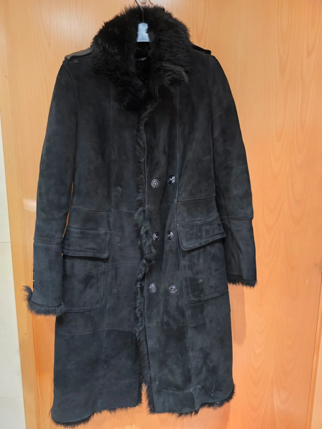 Selling a beautiful black shearling coat from Burberry! It's in great condition and features a luxurious fur collar and lining. Perfect for staying warm and stylish during the colder months.