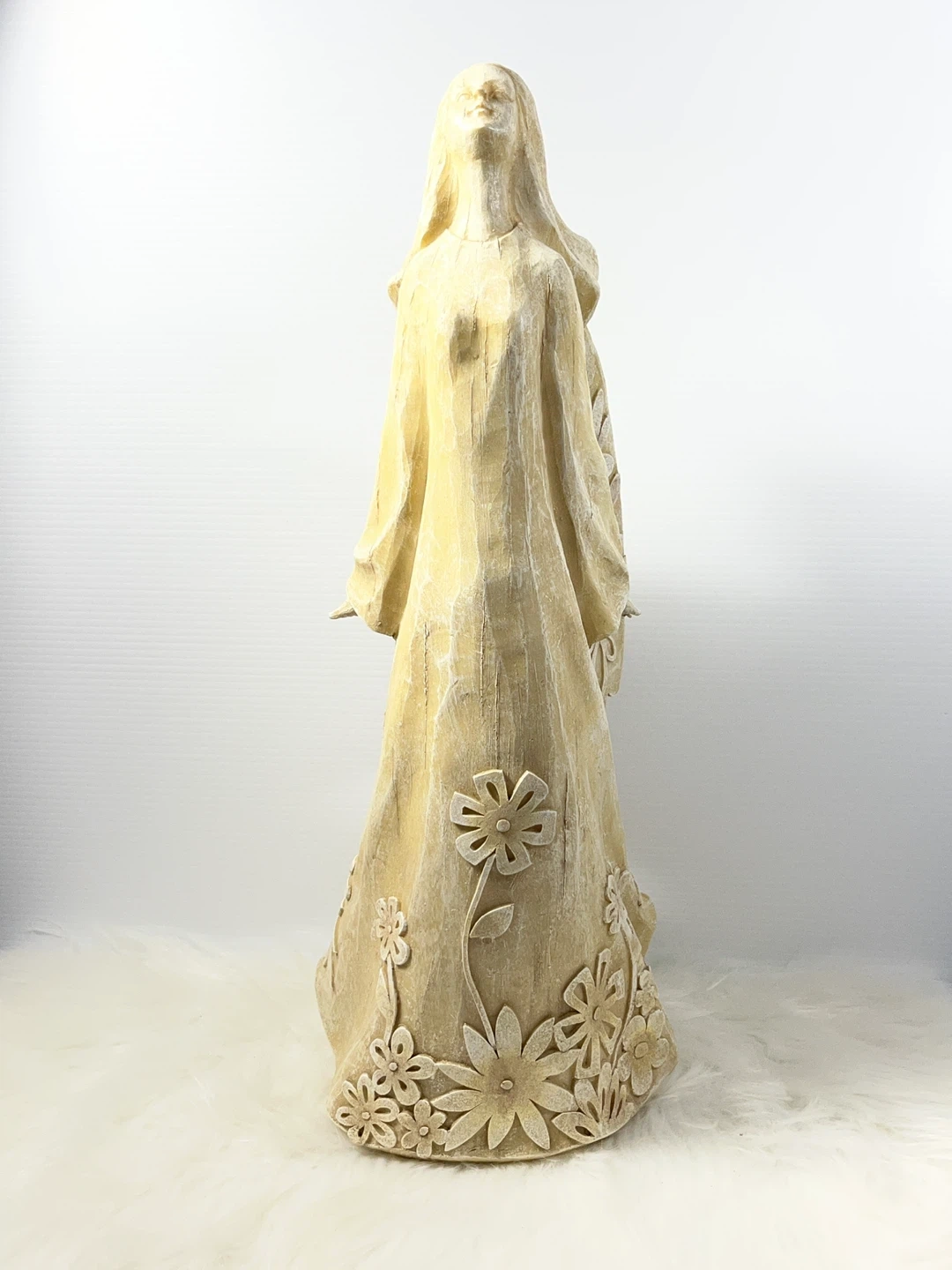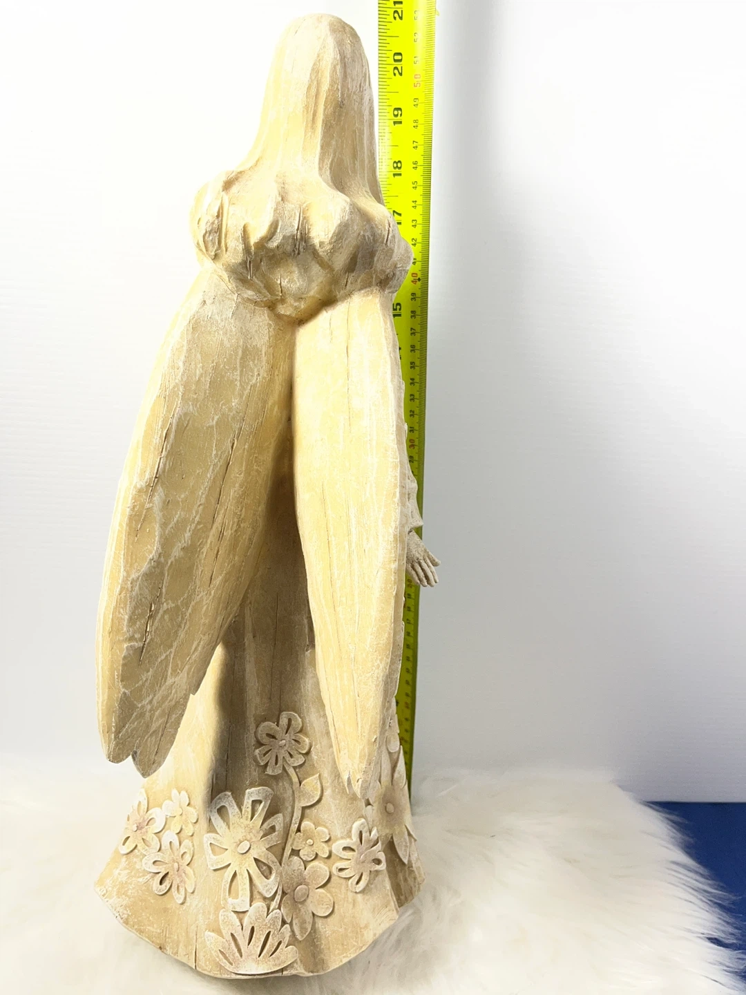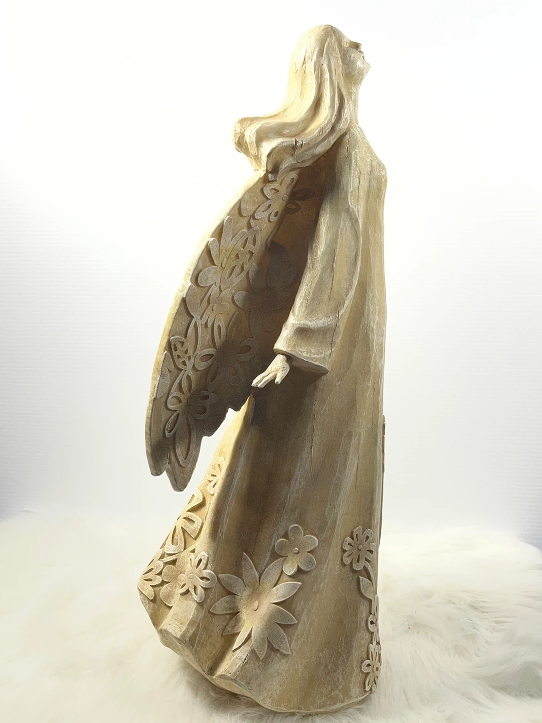 Title: STUNNING 20.5" Large Floral Angel Statue – Carved Wood Style