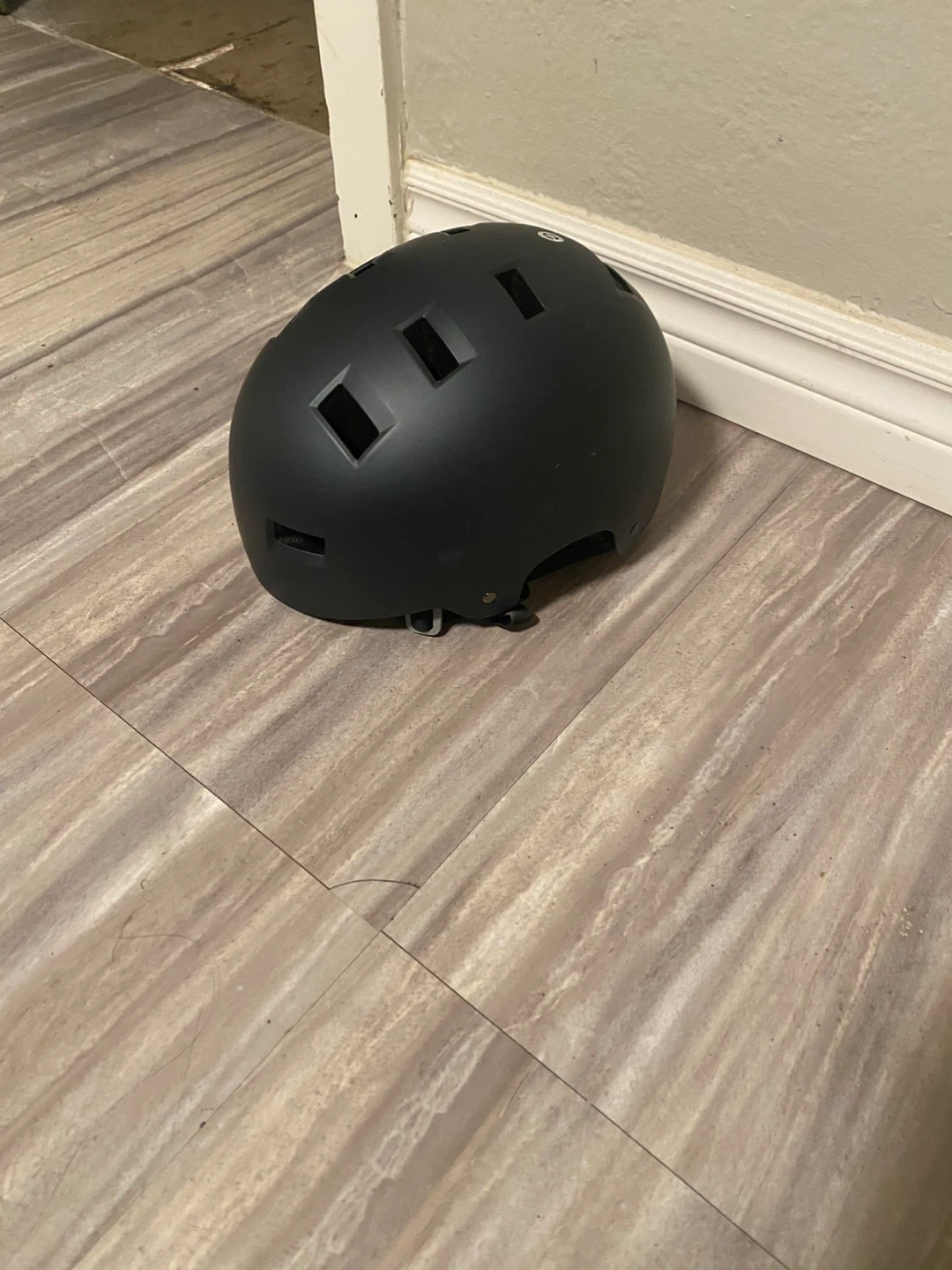 This is a black Schwinn bicycle helmet. It has a built-in rear red LED light for added visibility. Multiple vents keep things cool while you ride.
