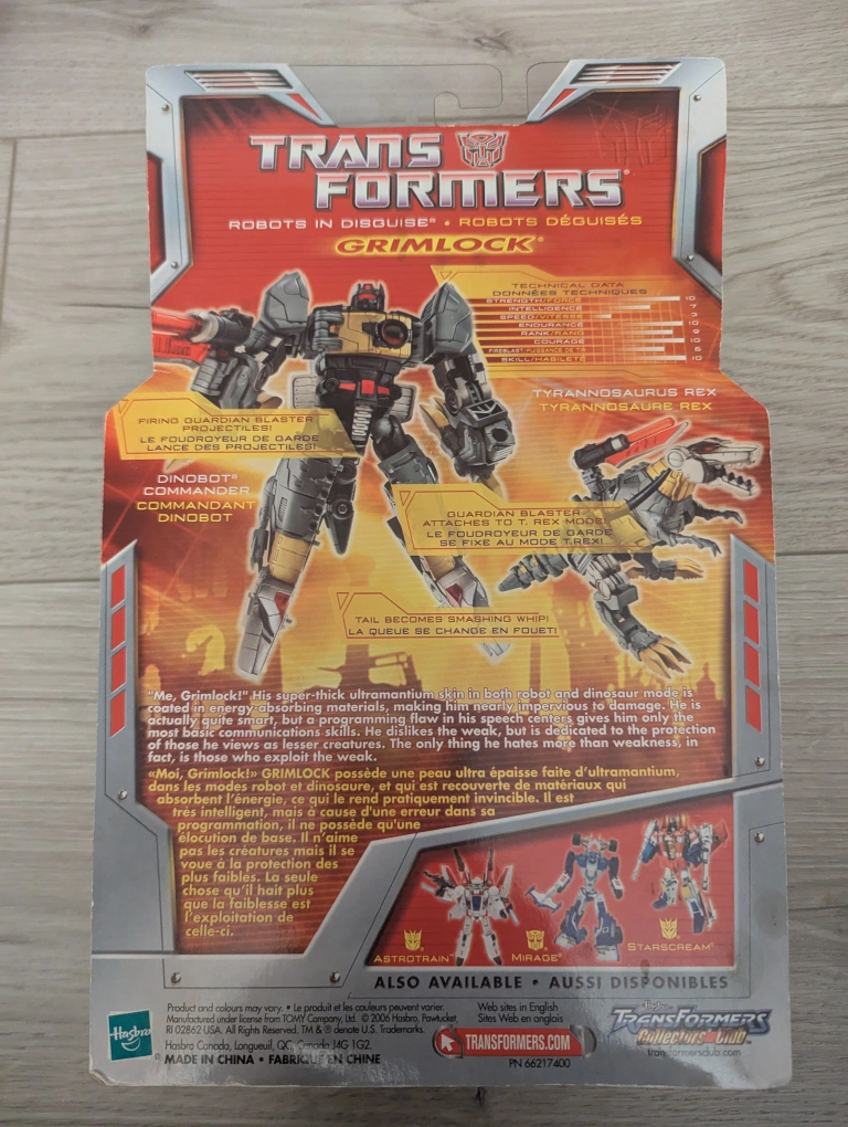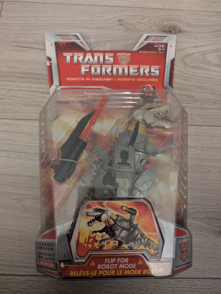 Selling a brand new, in-box Transformers Grimlock Classic Deluxe figure! It's from the Robots in Disguise series. This figure can flip for robot mode!