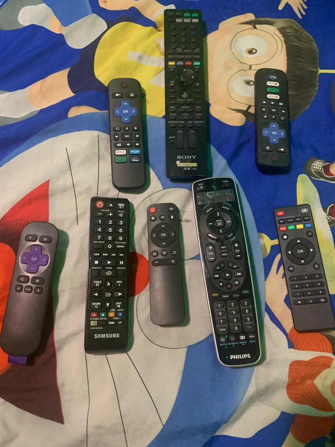 Selling a collection of various remote controls. Includes remotes from Sony, Samsung, Philips, and Roku. Perfect if you need replacements or spares!