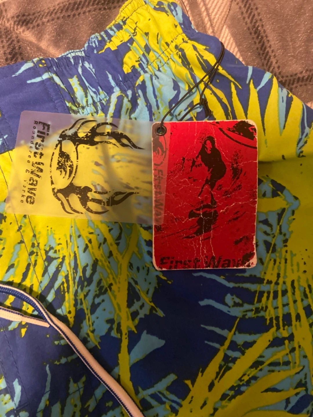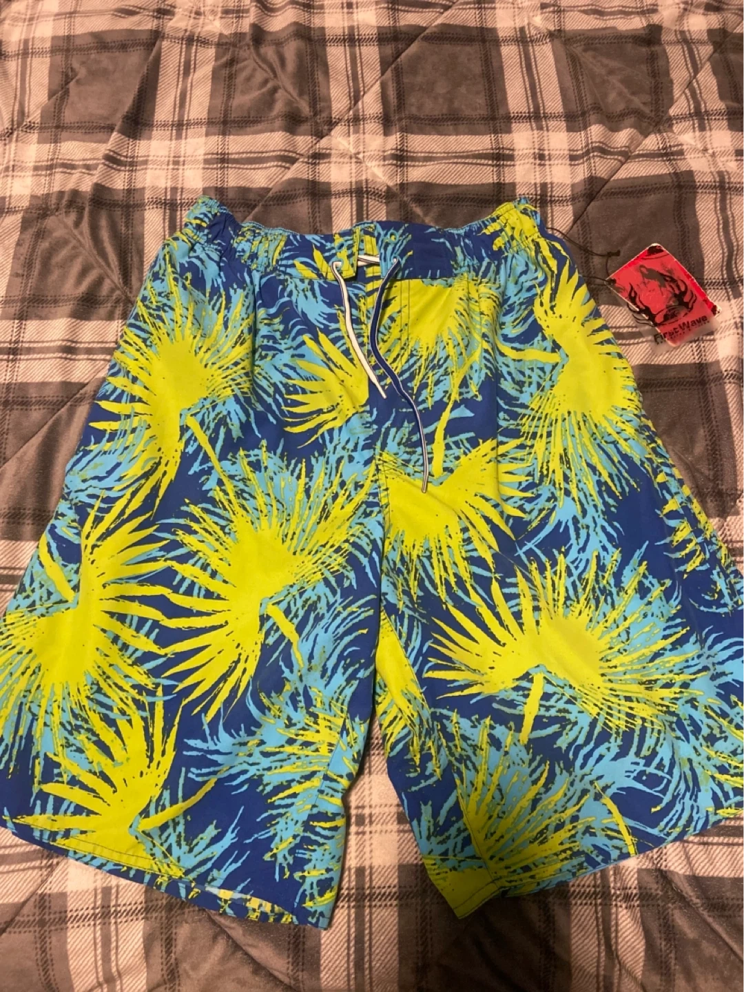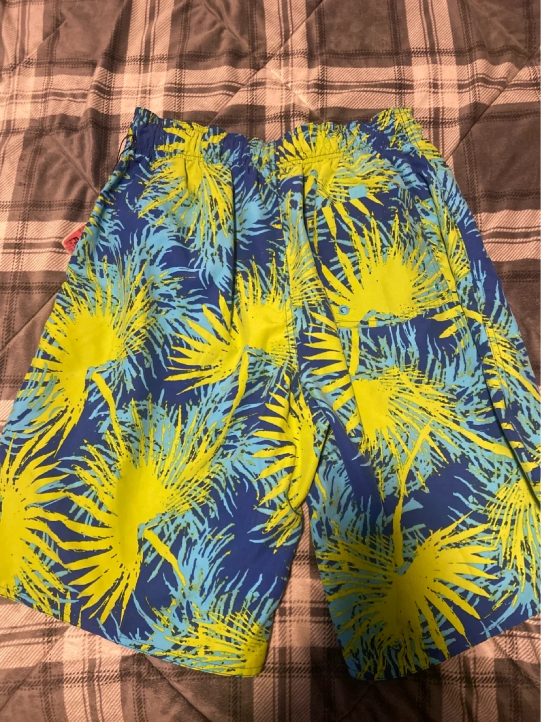 Mens Blue and Yellow Swim Shorts Size Medium New With Tags. These are new never used. The tag is all crumpled but they are brand new never used. They are a men’s size medium. It has some side pockets, drawstrings, and 1 back pocket. Contact me if interested.