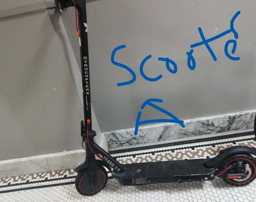 Gyro Copter Flash 3.0 electric scooter. It's black and has a black deck. This scooter is great for getting around town!