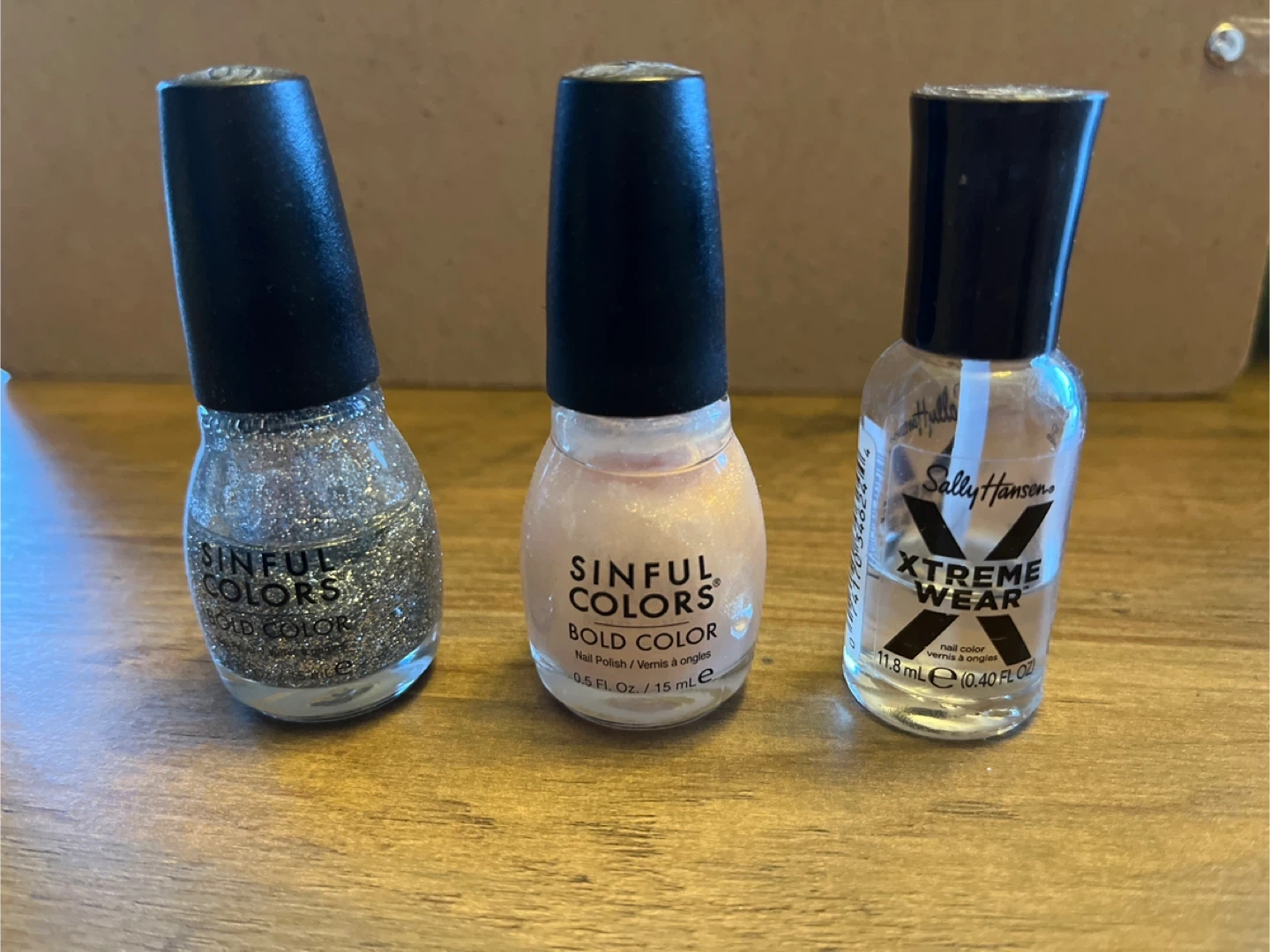 This lot includes various shades of nail polish from Sally Hansen and Sinful Colors. You'll get 7 bottles in total, featuring different finishes and colours. These polishes are great for at-home manicures or trying out new looks!