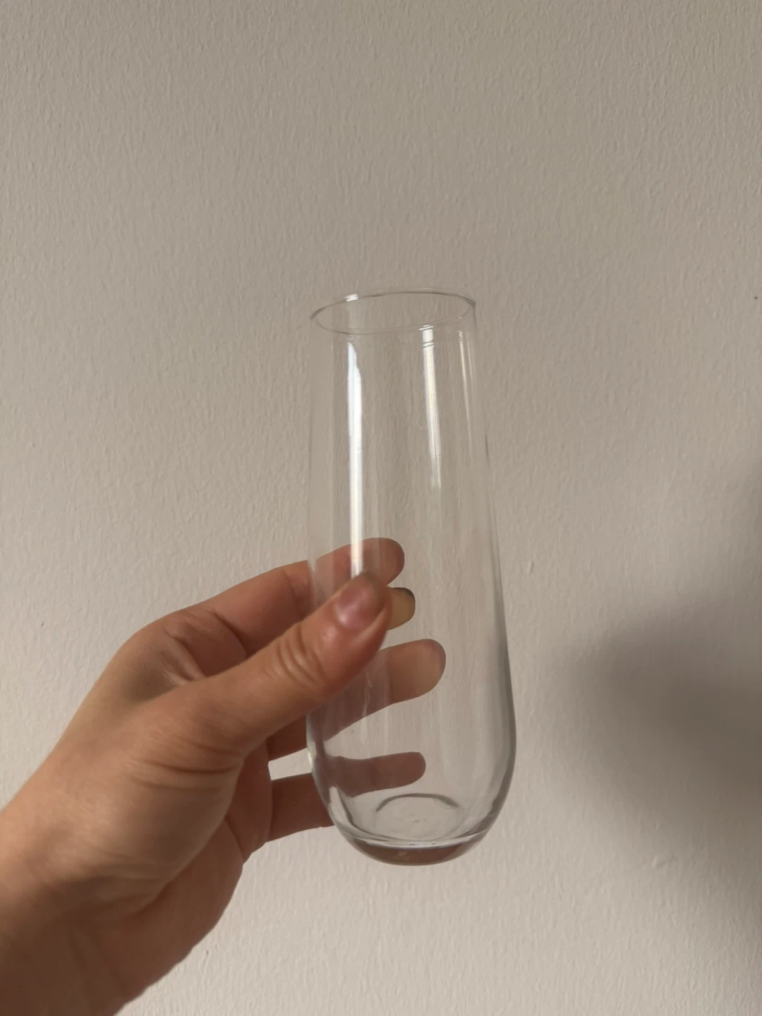 This is a set of six clear, stemless wine glasses. They're made of glass and have a sleek, modern design. These glasses are perfect for serving wine or other beverages at any occasion!