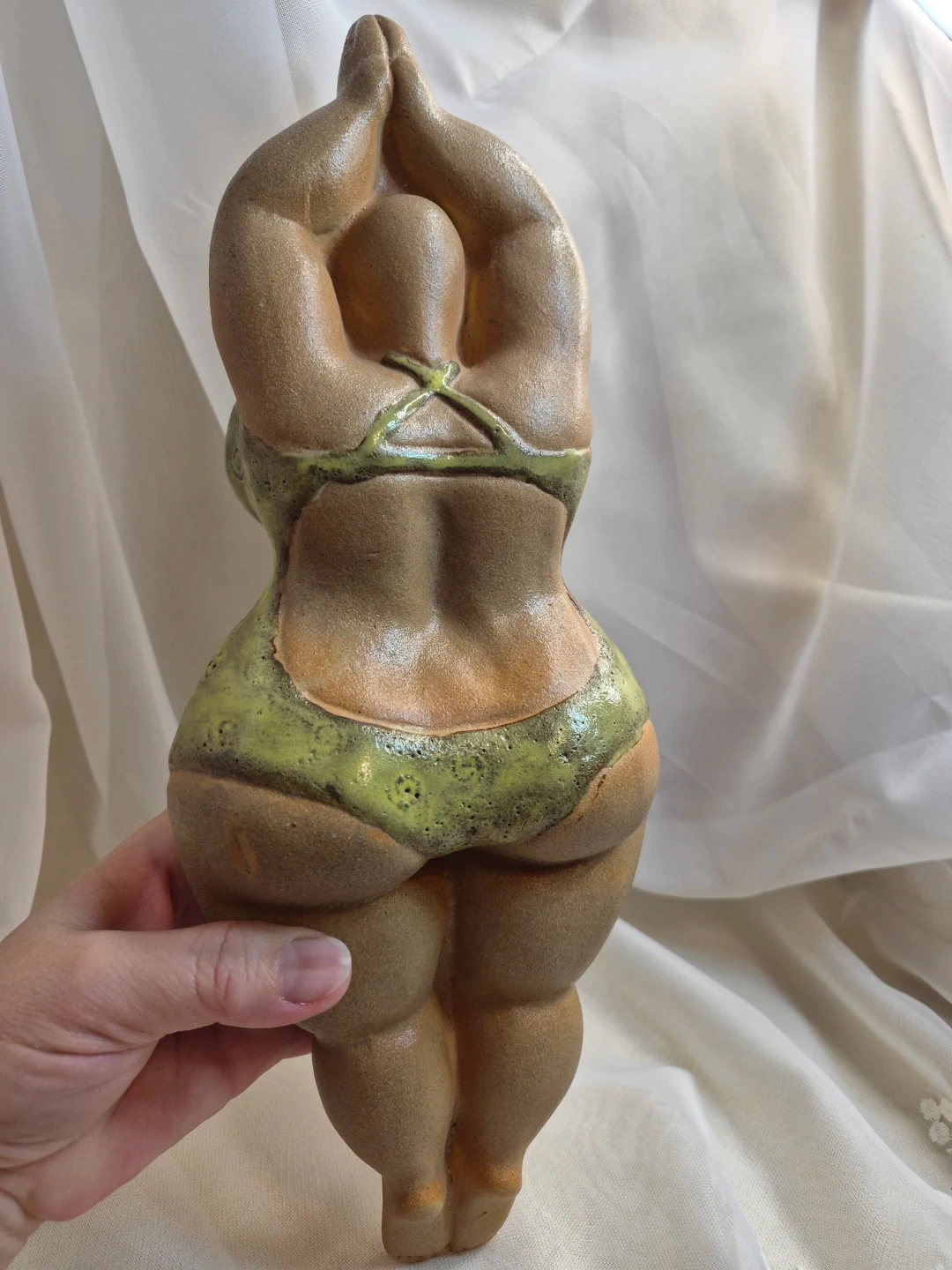 Clay Vintage 14" Diving Lady Wall Decor Backside with Green Swimsuit Perfect Pool Decor Exccellent Condition please see all pictures