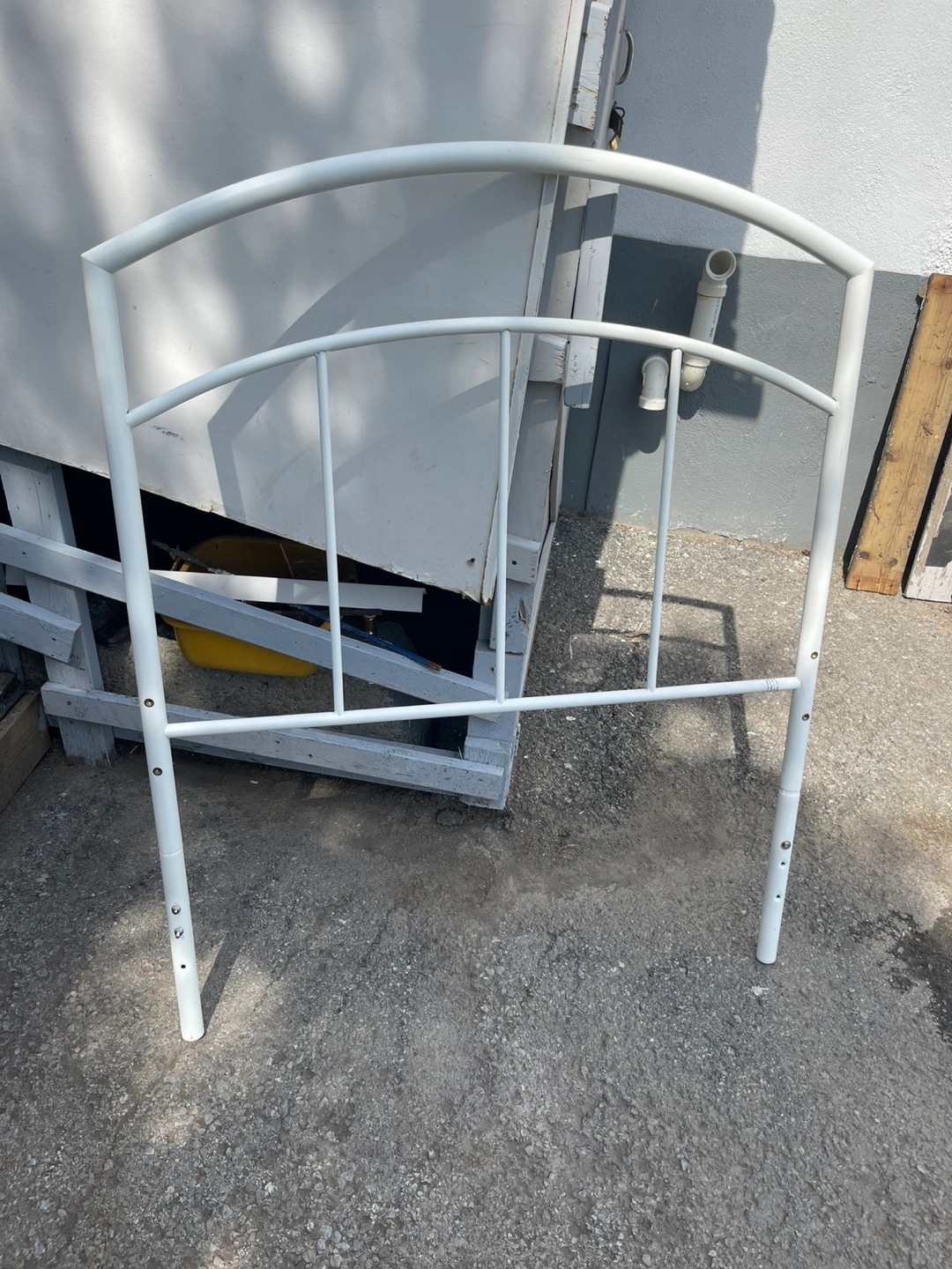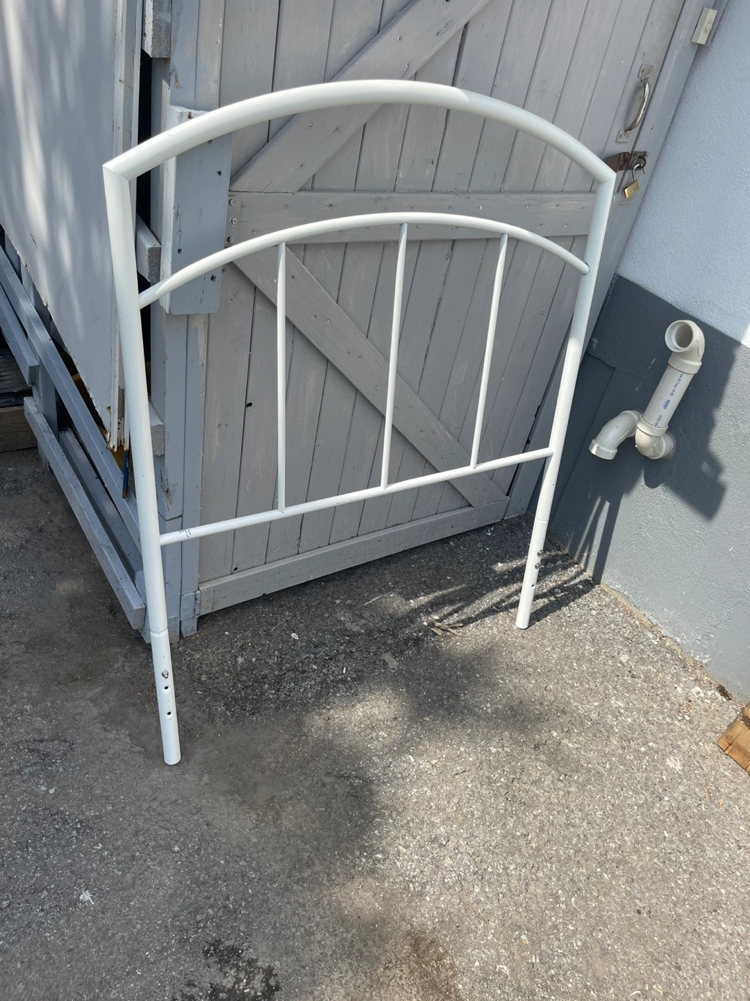 Selling a white metal headboard. It's in great shape and ready to add a touch of simple elegance to your bedroom!