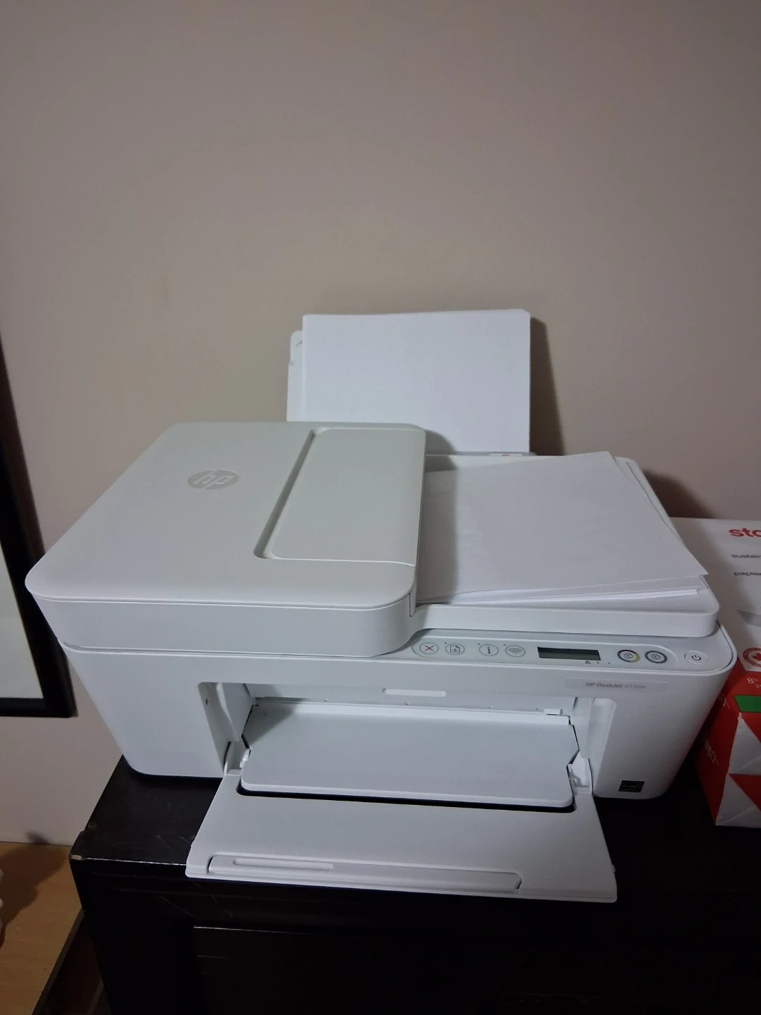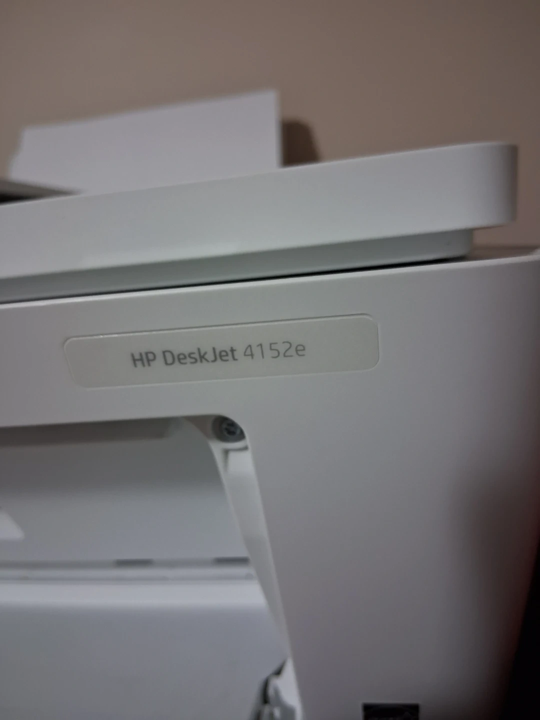 HP DeskJet 4152e all-in-one printer that prints, copies, and scans. It's a compact white unit perfect for home or small office use. Includes two packages of printing paper and cords. I just replaced both the Hp ink cartridges. Clean and works great. Ready for a new home. Thanks 😊