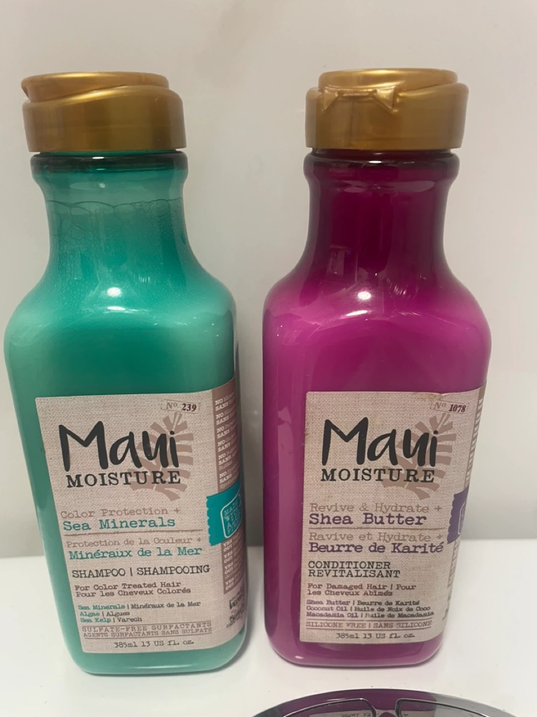 This set includes Maui Moisture's Color Protection Sea Minerals Shampoo and Revive & Hydrate Shea Butter Conditioner. Both bottles are 385ml (13 US fl. oz.). They are sulfate and silicone-free formulas.Brand new never use 😊