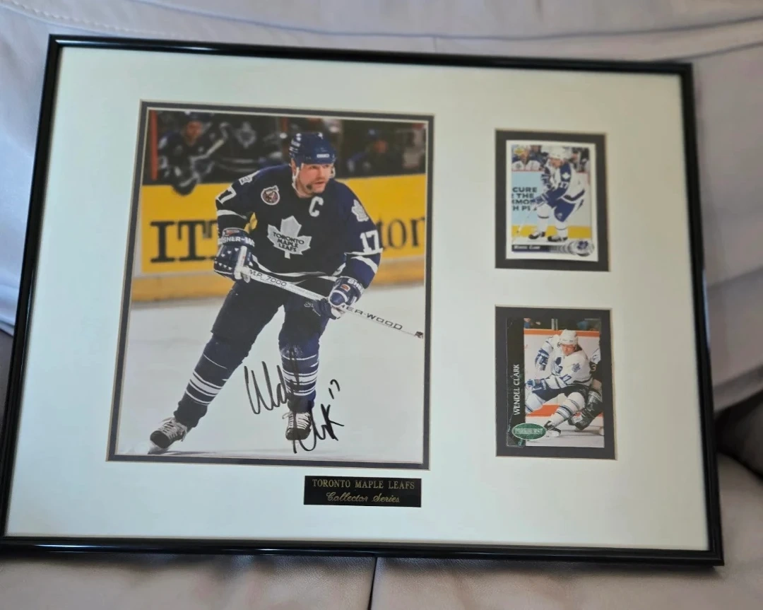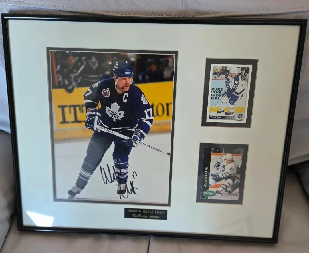 Wendel Clark Autographed photo including two hockey cards π