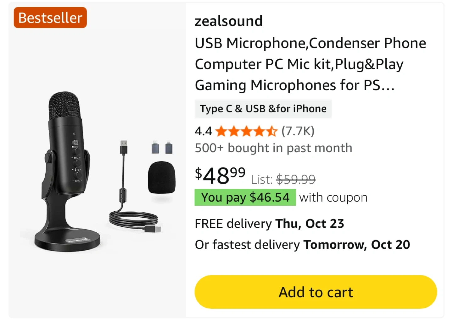 60ZealSound professional studio microphone. Comes in black. It has its box and all other components including the cable and other extensions. Perfect for recording, streaming, calling, or anything you’d like to use it for. Barely used and like new. Cheaper than Amazon’s price and no taxes on top either!