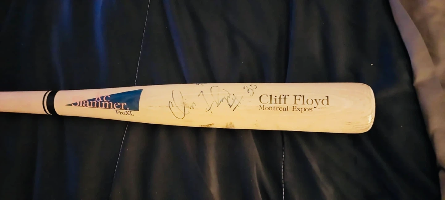 Full-size baseball bat signed by Cliff Floyd (Montreal Expos).