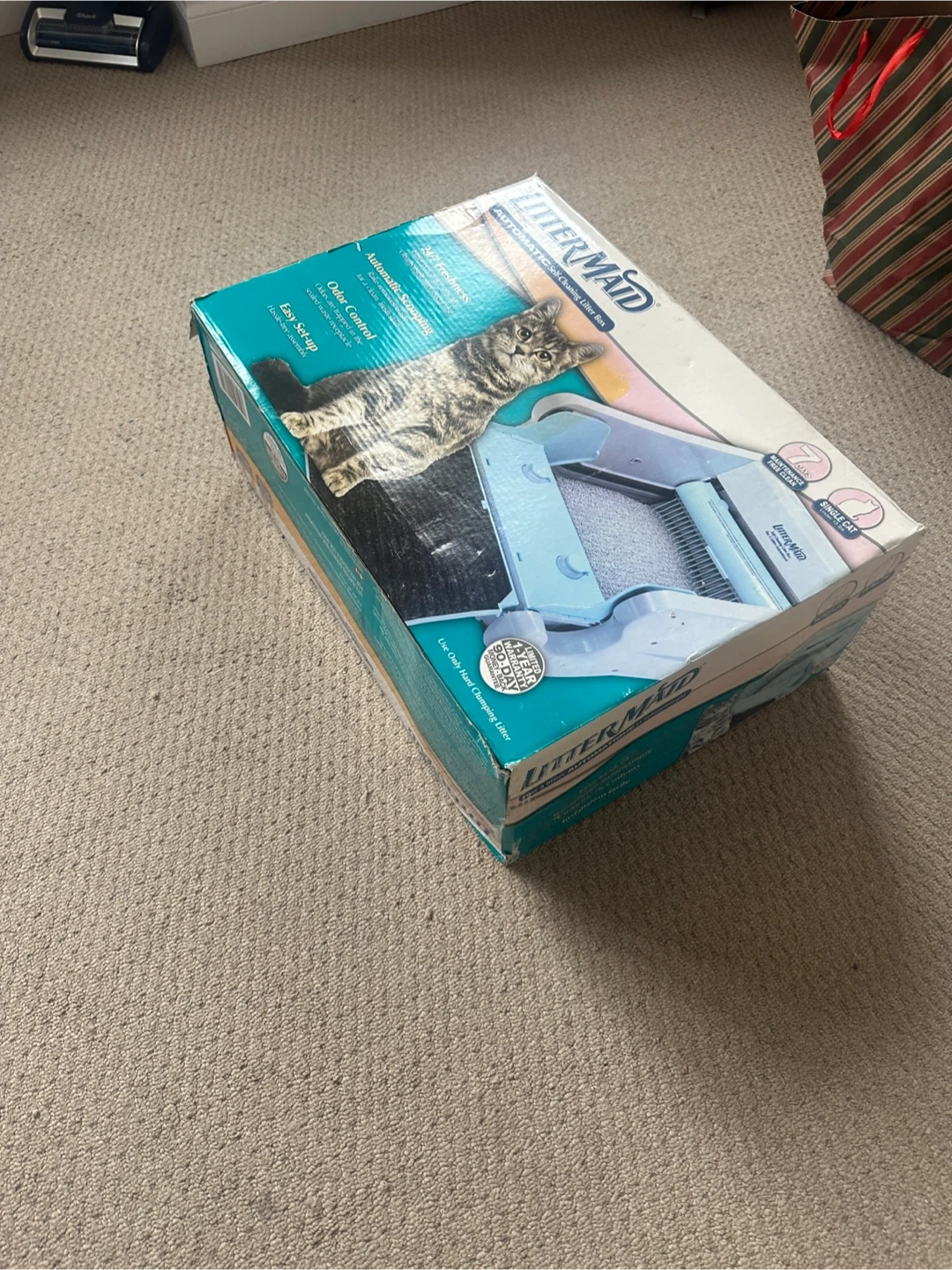 Keep your home fresh with the LitterMaid automatic self-cleaning litter box. It features automatic scooping for continuous freshness and odor control. This unit has a paw cleaning ramp, a scoop and rake cleaner, and includes 8 waste receptacles and 8 carbon filters.