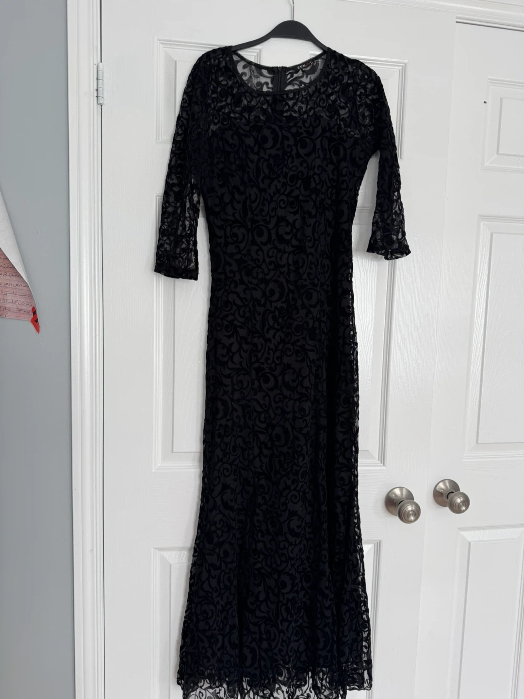 Selling a beautiful Zenzii black velvet dress. It has a lovely pattern and is in great condition. Perfect for an evening out or a special occasion!
