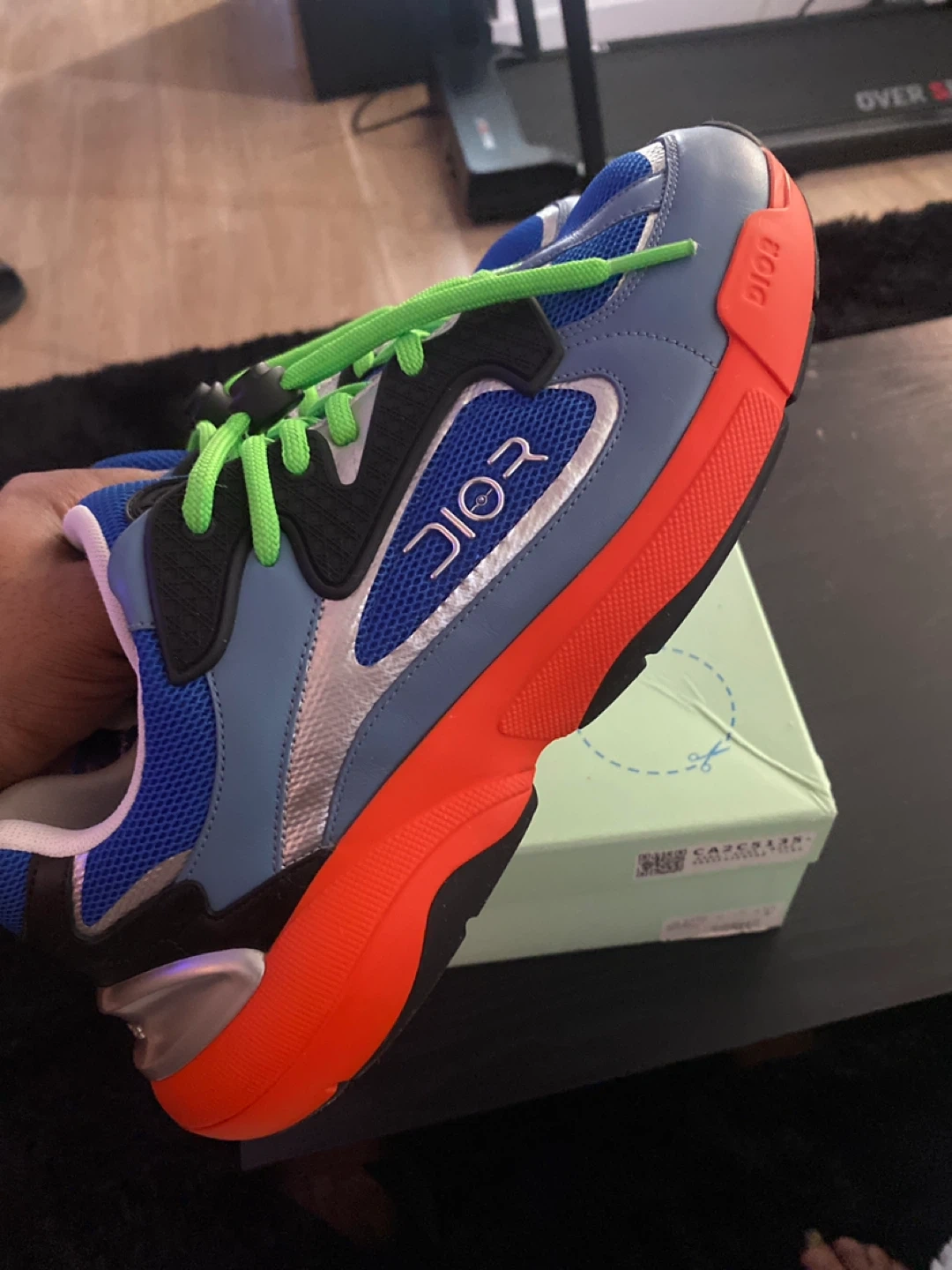 Selling a pair of Dior B30 sneakers in a striking blue and orange colorway! The shoes feature the iconic Dior logo and come with the original box. They are in great condition and ready for a new owner I only wore them three times