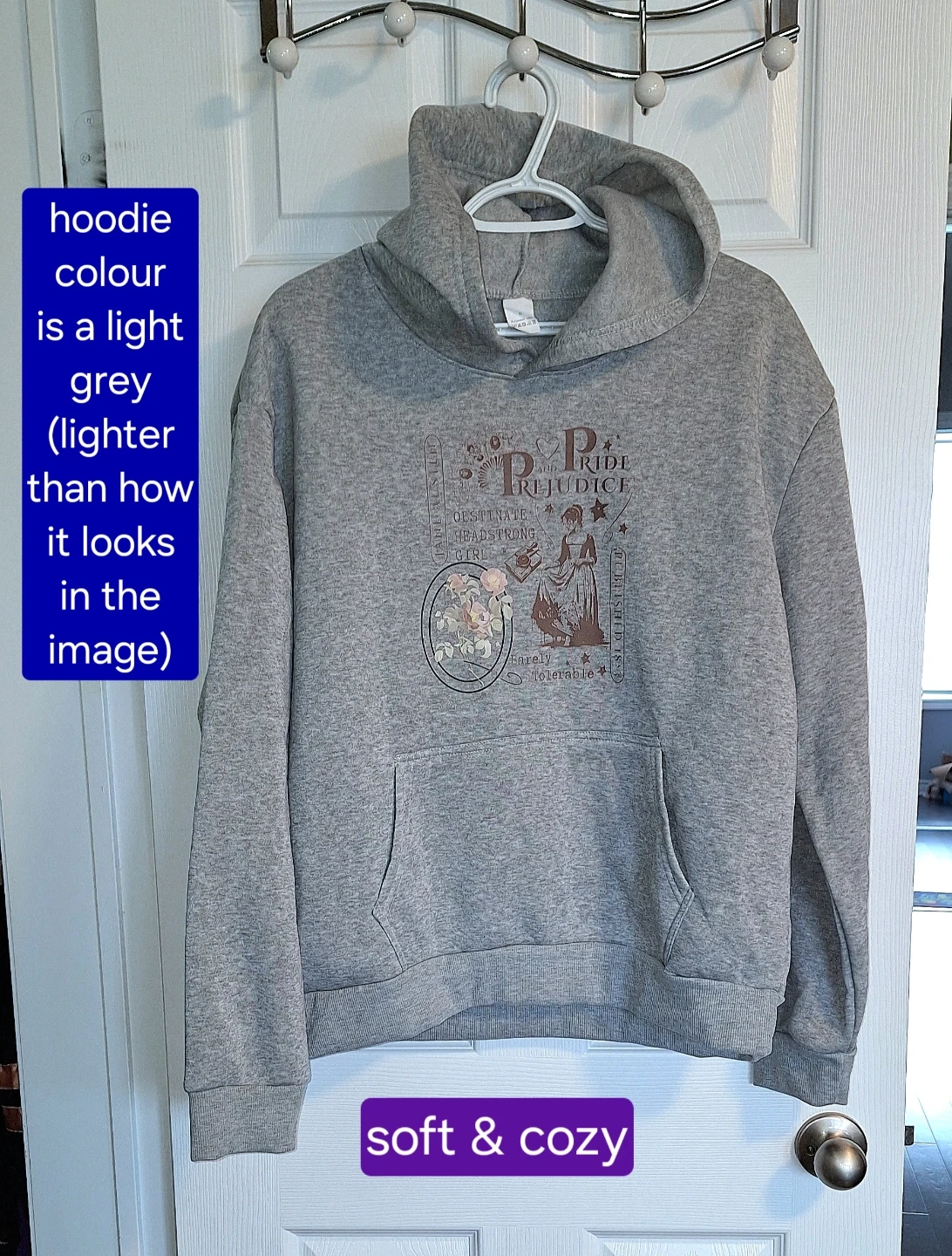 BRAND NEW never worn hoodie - Light grey hoodie with design of Pride and Prejudice by Jane Austen