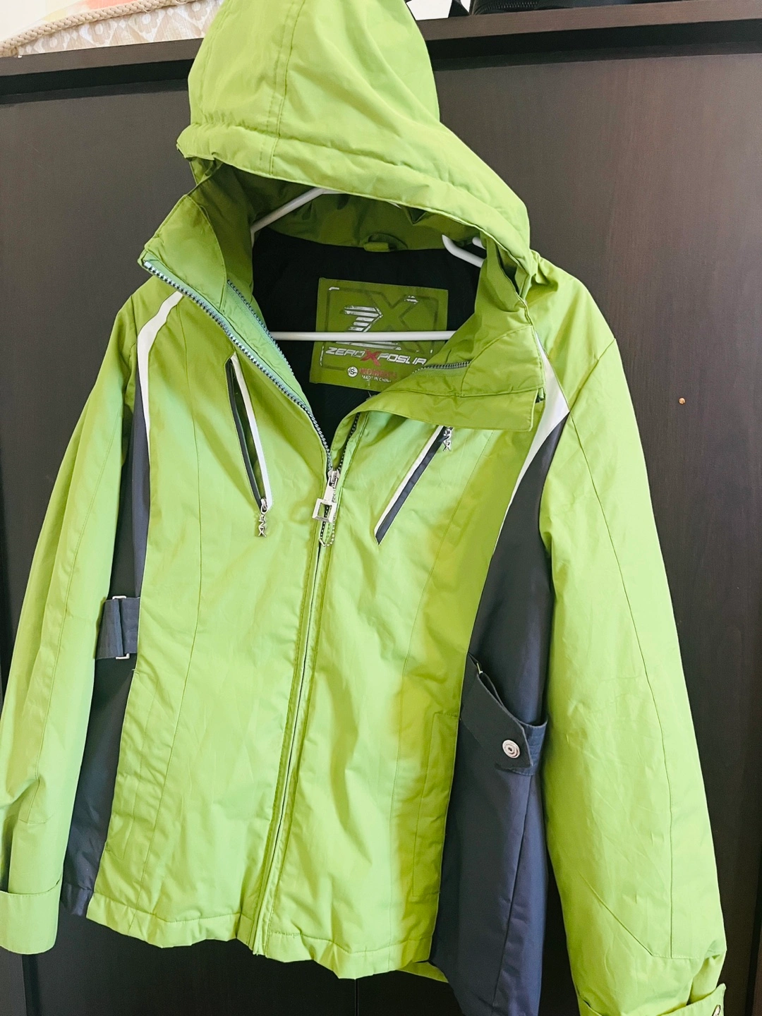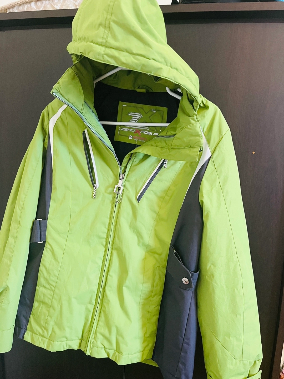 Selling a Zero Exposure women's jacket in a lovely green colour! It has a hood and some nice detailing. Perfect for those in-between weather days