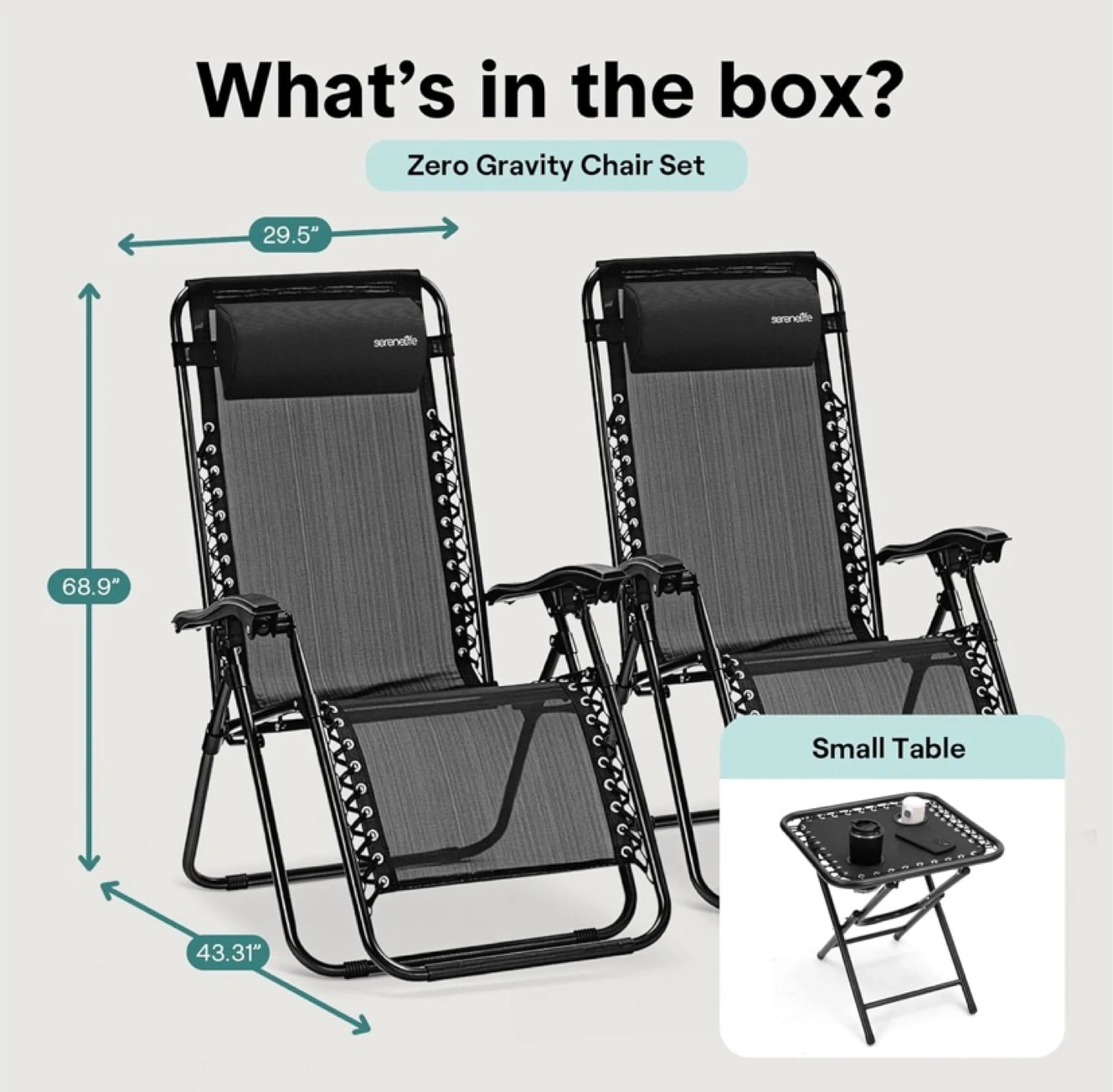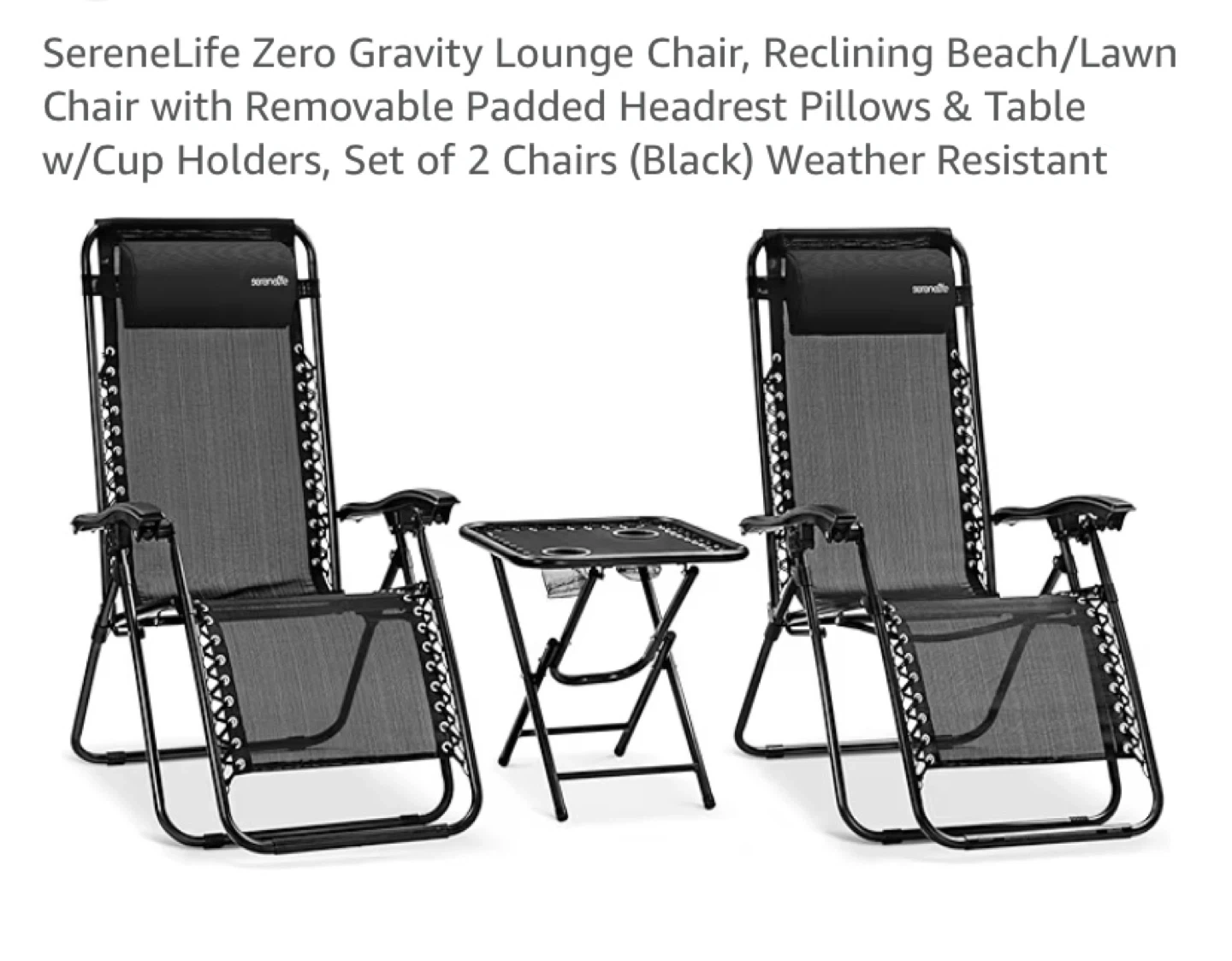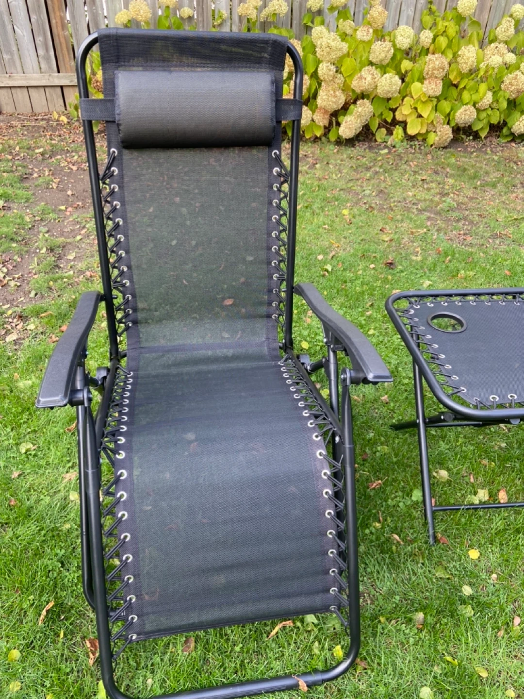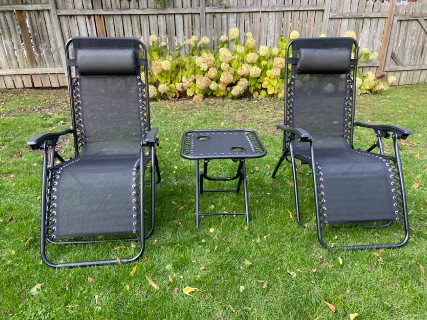 291Zero Gravity Lounge Chairs and Table Two chairs, one table $100 for the set (retail $185 plus tax) Pickup in Whitby