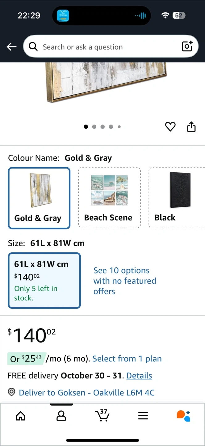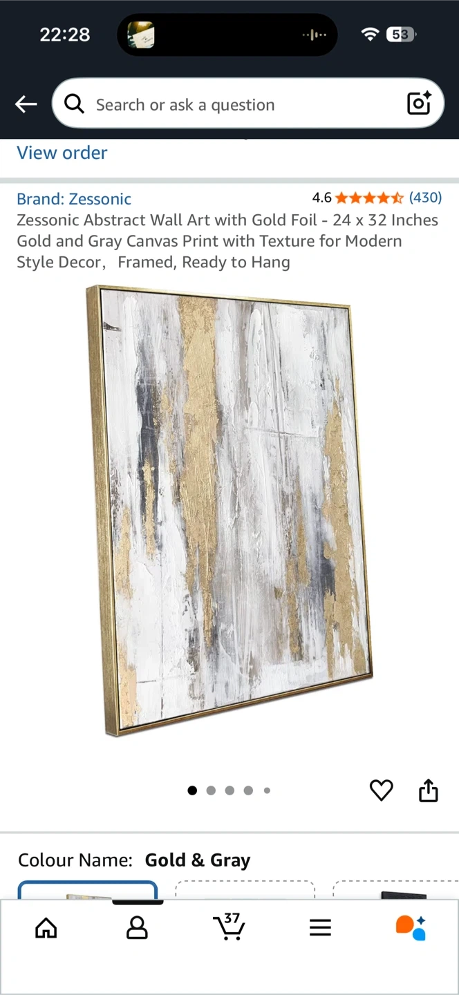 120Add a touch of modern style to your home with this Zessonic abstract wall art! The canvas print features a beautiful gold and gray design with texture. It is framed and ready to hang, making it easy to incorporate into your decor. Dimensions are 61cm x 81cm (approximately 24x32 inches). Originally bought for $140 each