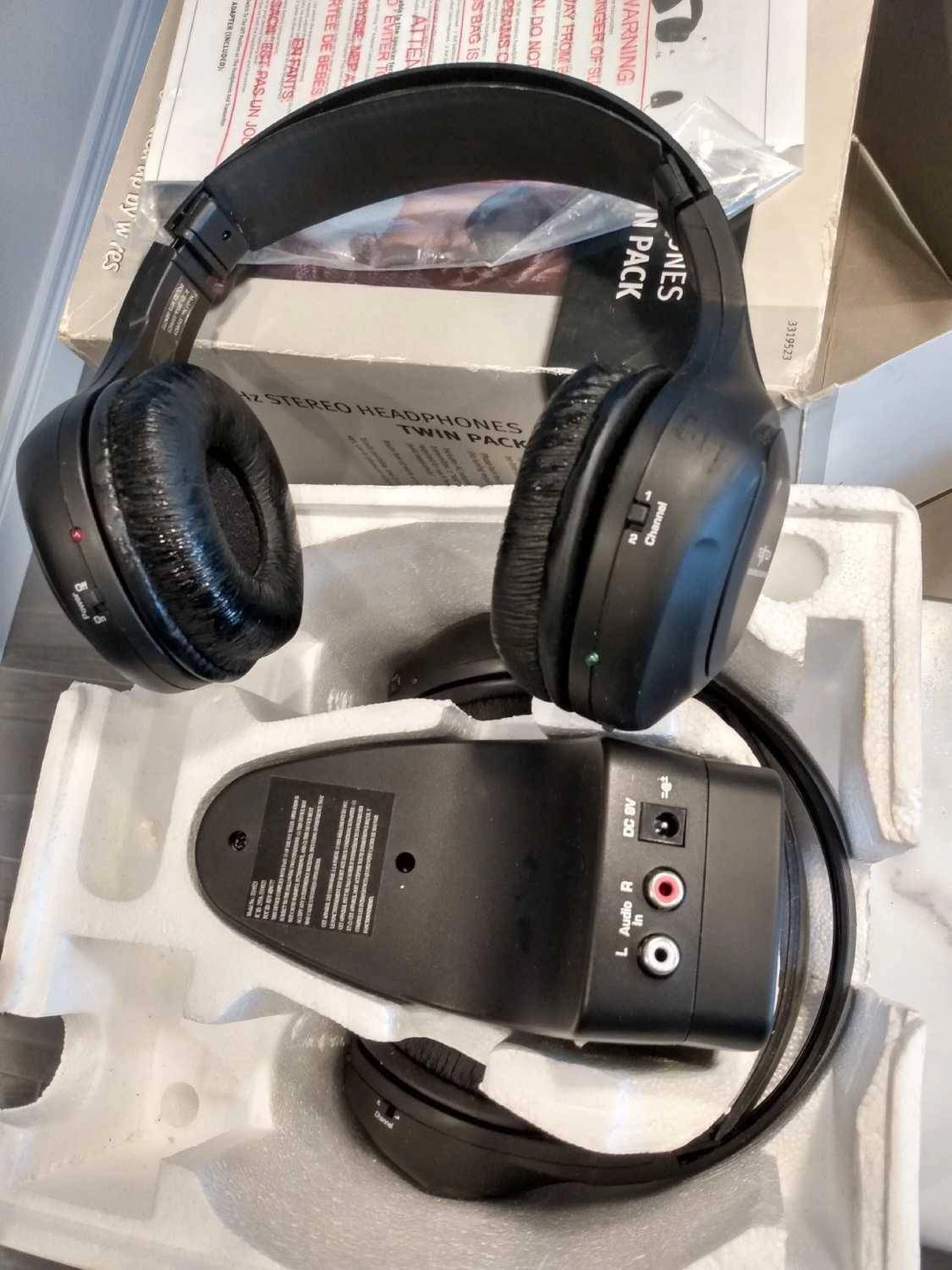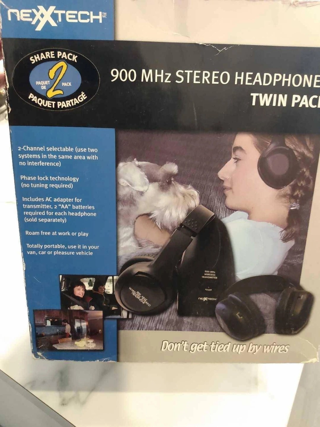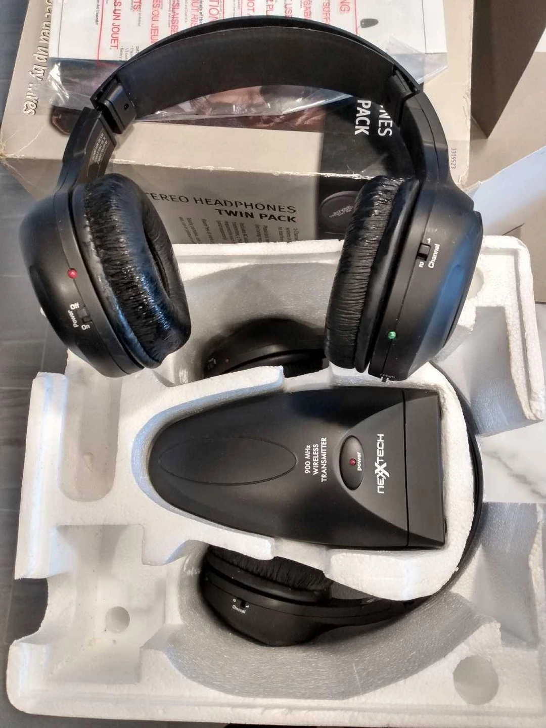Selling a Nexxtech 900 MHz Stereo Headphones Twin Pack. It includes an AC adapter for the transmitter. Please note that 2 "AA" batteries are required for each headphone, but they are sold separately. It's totally portable, so you can use it in your van, car, or pleasure vehicle. Don't get tied up by wires!