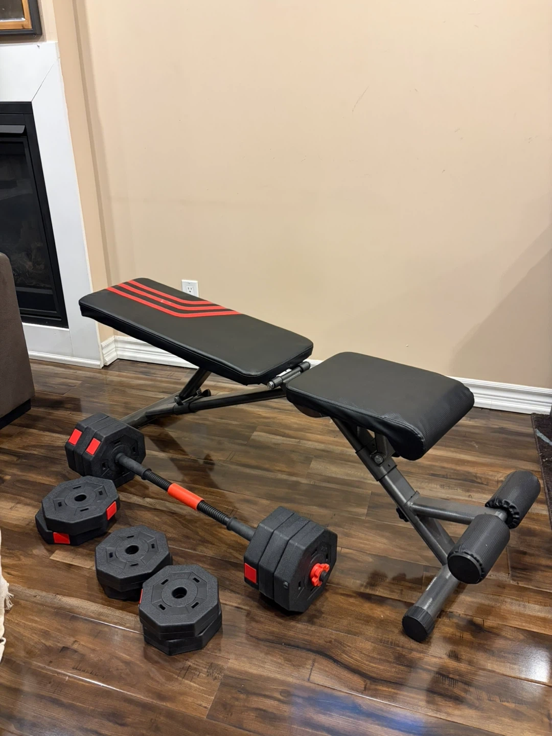I lost the attachment that lets you turn the barbell into two dumbells, but I’ve see them on Amazon for cheap.