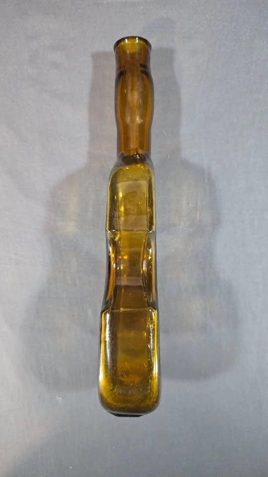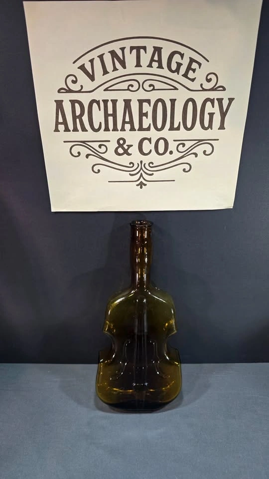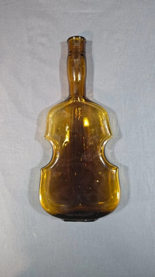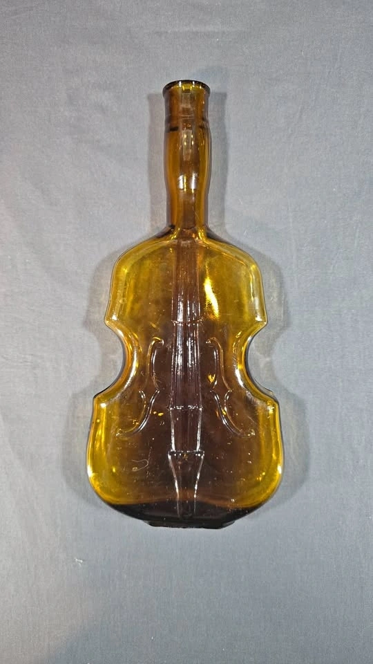 Gorgeous amber violin shaped bottle from the 1890-1930s. Violin-shaped bottles became popular novelty items in the late 19th and early 20th centuries, particularly during the Prohibition era and its immediate aftermath.