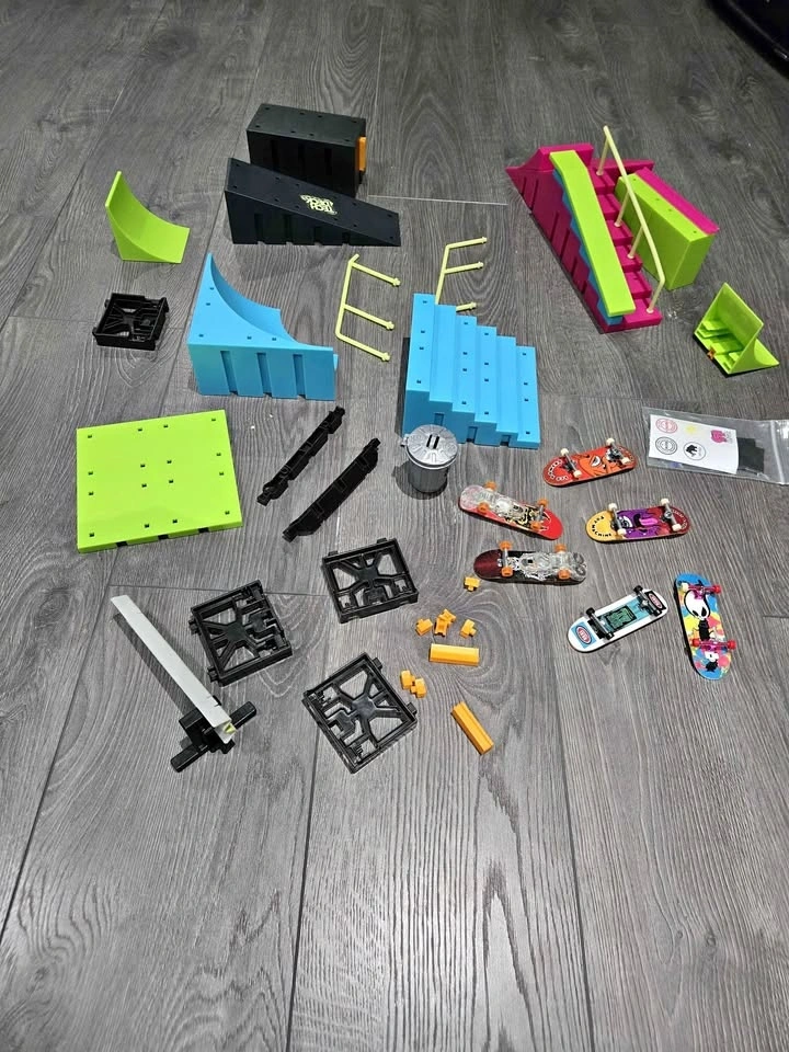 Awesome Tech Deck collection. Has a bunch of ramps, obstacles, and 6 fingerboards. Lots of different pieces for building your own mini skate park.