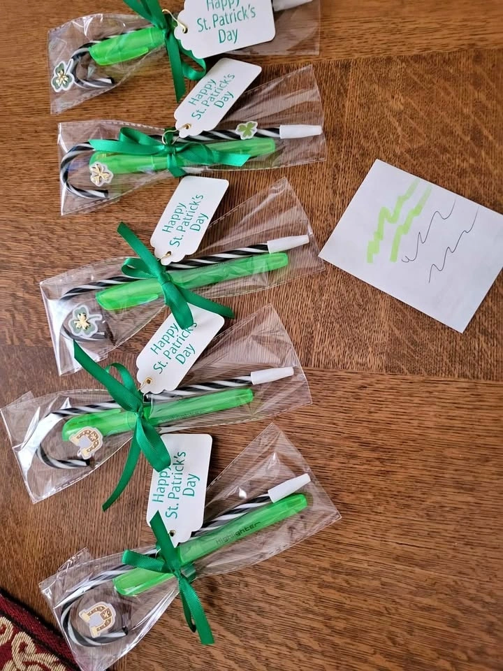 6 Festive party favors for St Patricks Day! Each one has green highlighter and black pen, wrapped with green ribbon and "Happy St Patricks Day" tag. Pick up only Hamilton, Upper James and Mohawk area. Cash only and no holds please.