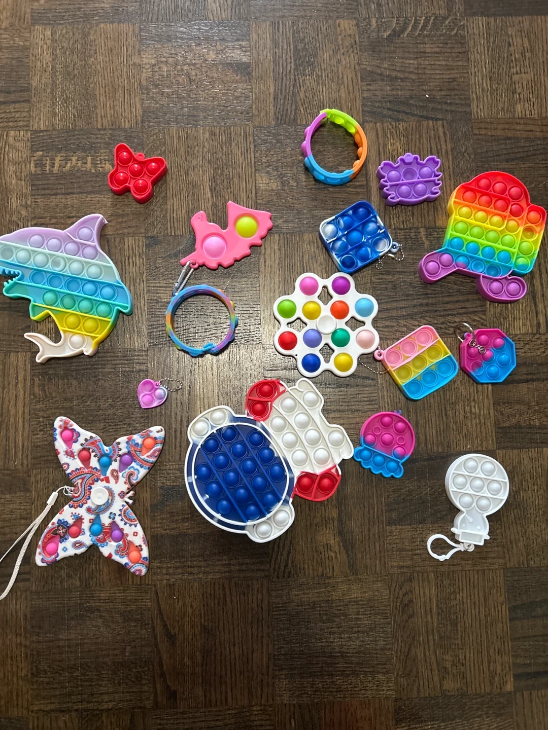 Selling a collection of fun and colourful pop it fidget toys! Great for stress relief and sensory play. There are different shapes and sizes, including a shark, butterfly, and more. Perfect for kids and adults alike!