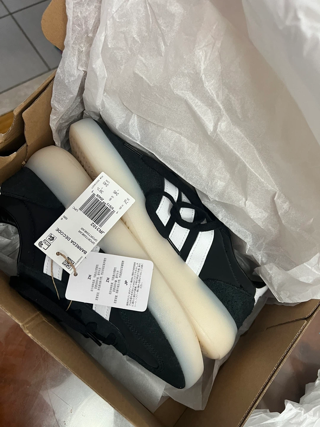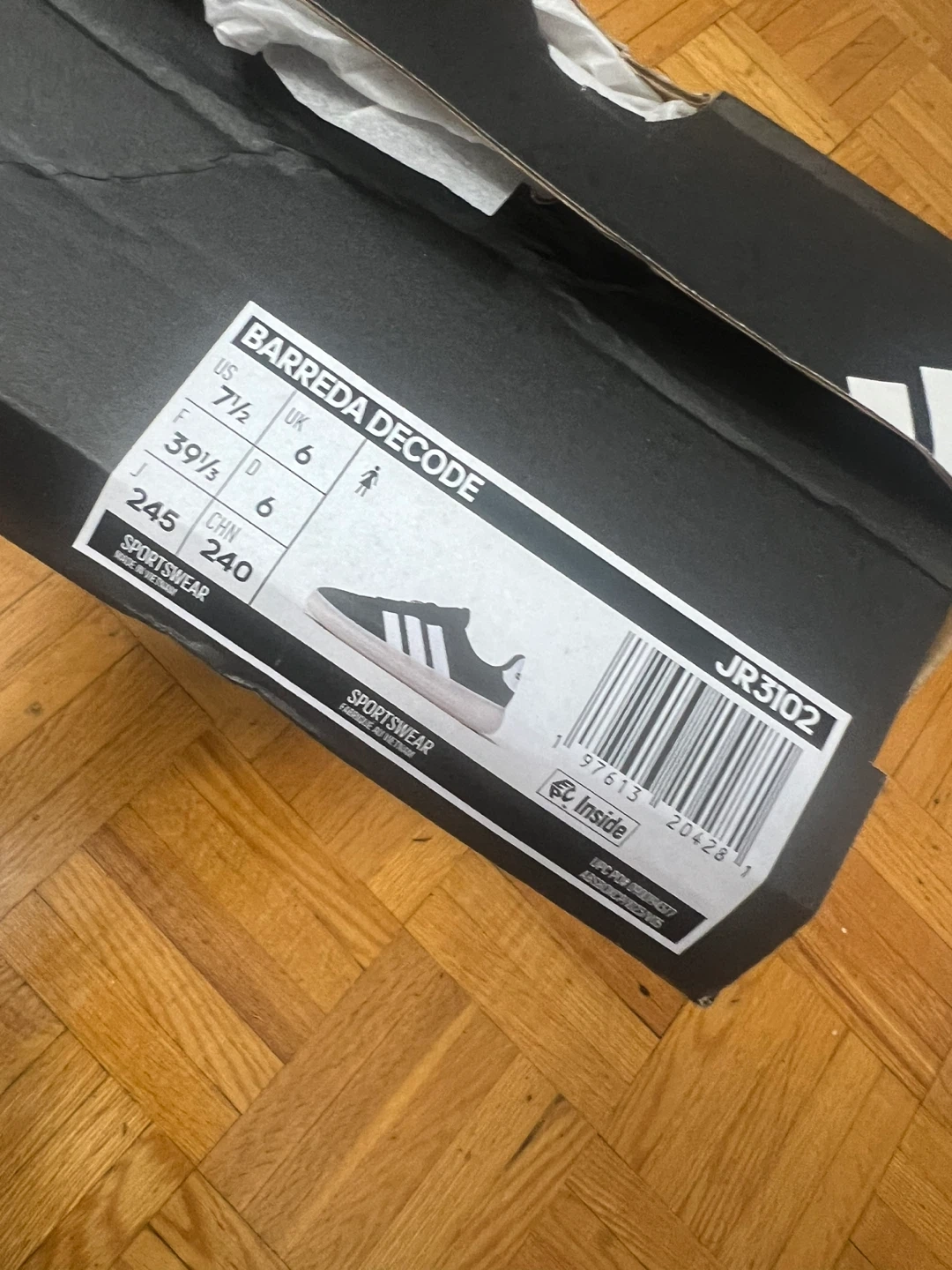 Classic Adidas Barreda Decode sneakers in black with white stripes. These shoes feature a comfortable design and durable rubber outsole. Size 7.5 US also fit 8 US