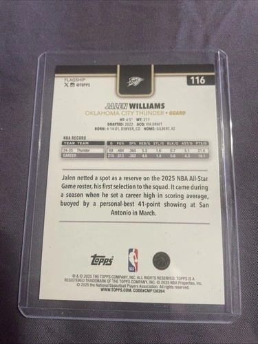 2025-26 Topps Basketball Jalen Williams Blackout Parallel SP