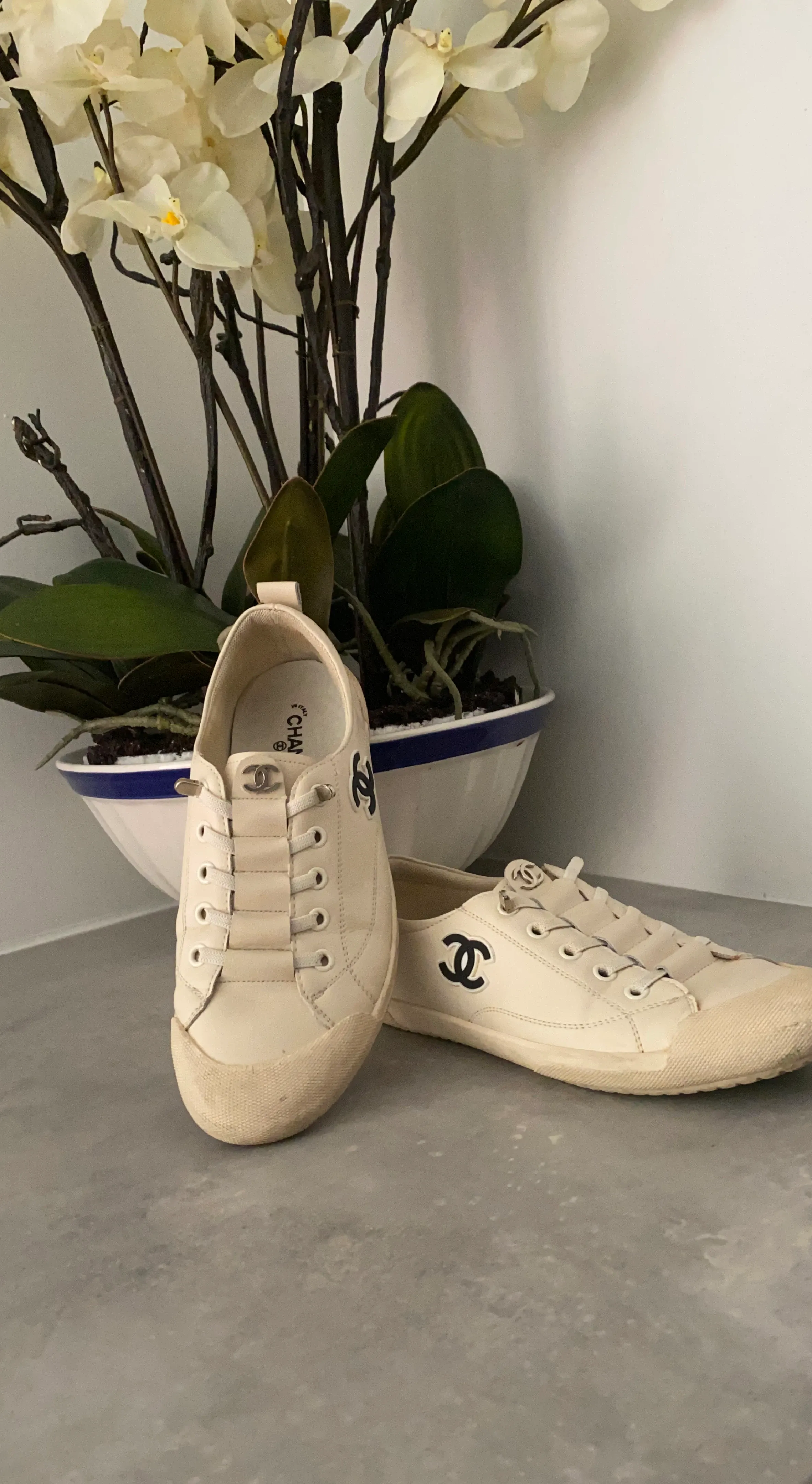 Chanel Cream Leather Sneakers