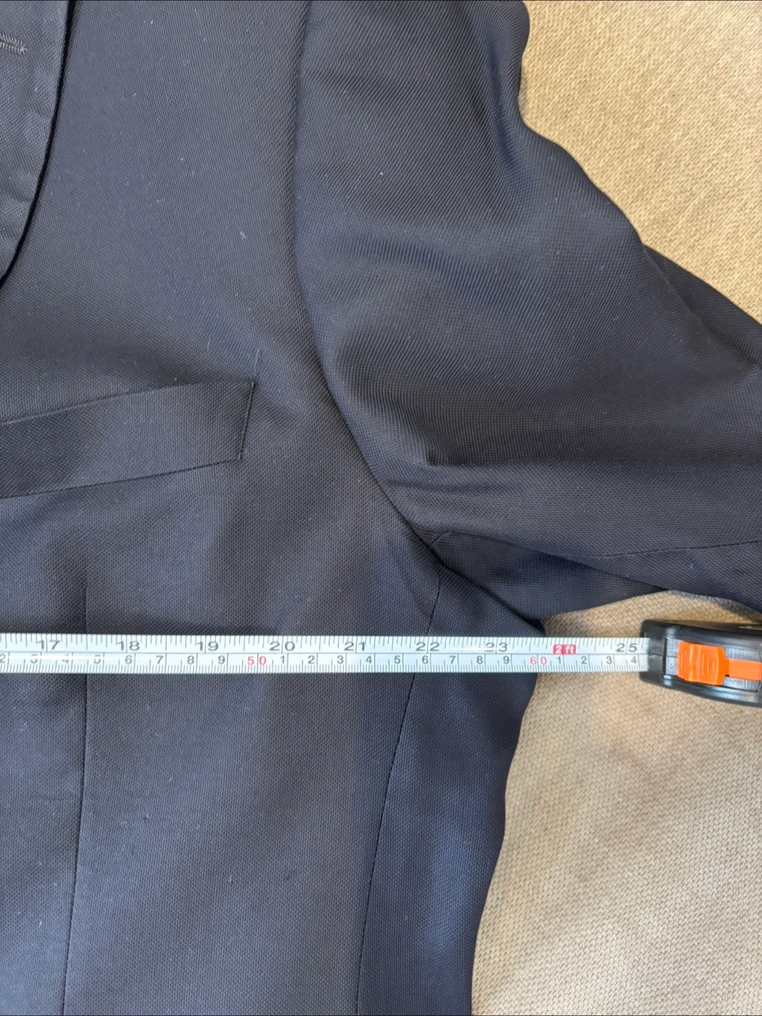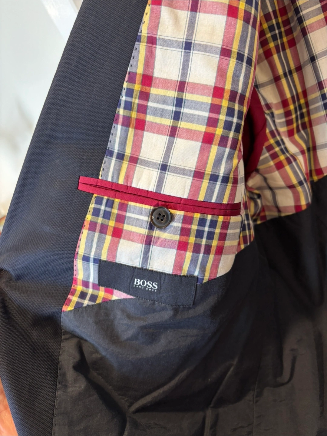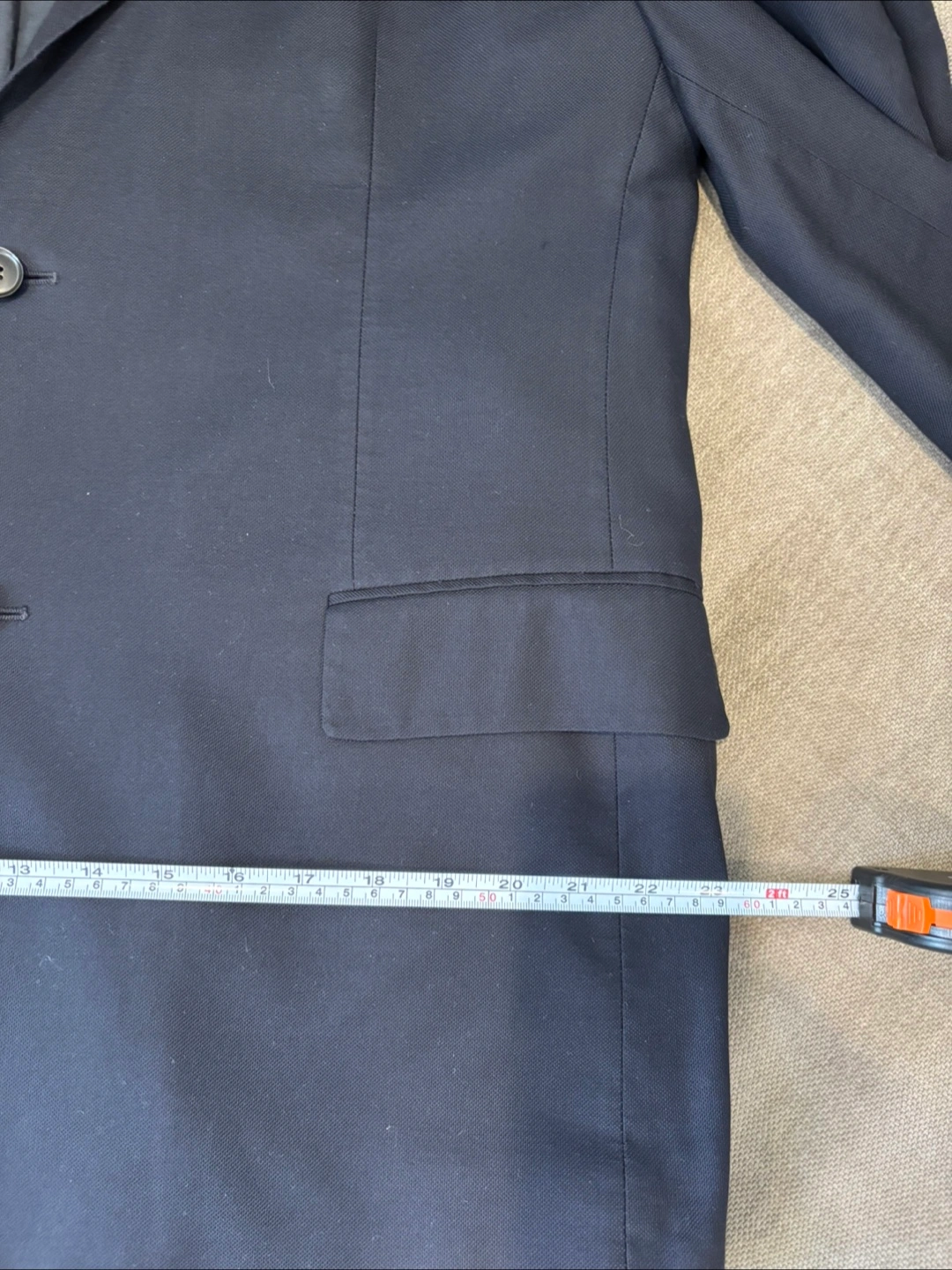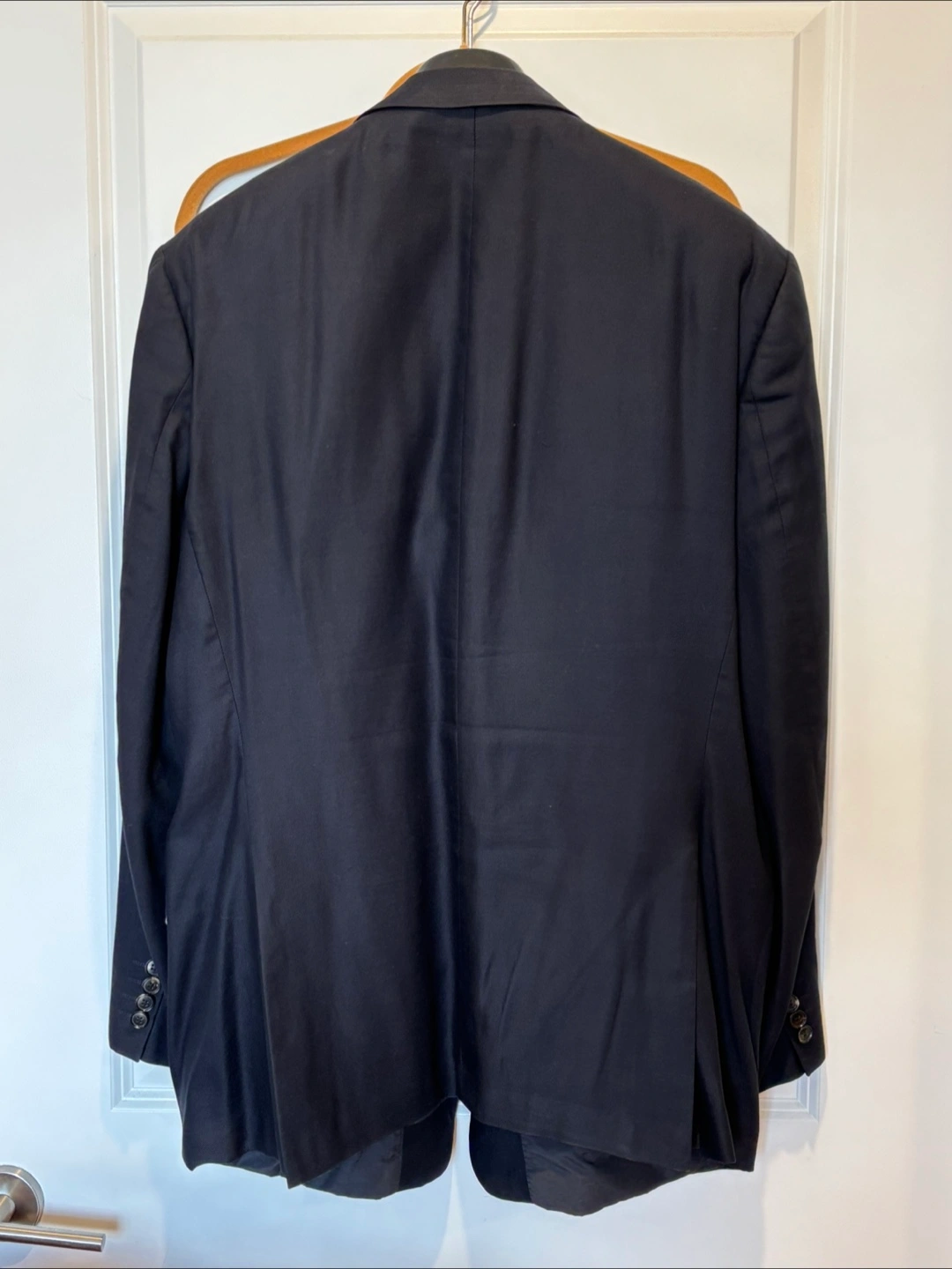 Has some wear in the left armpit lining but looks great. Still has original garment bag