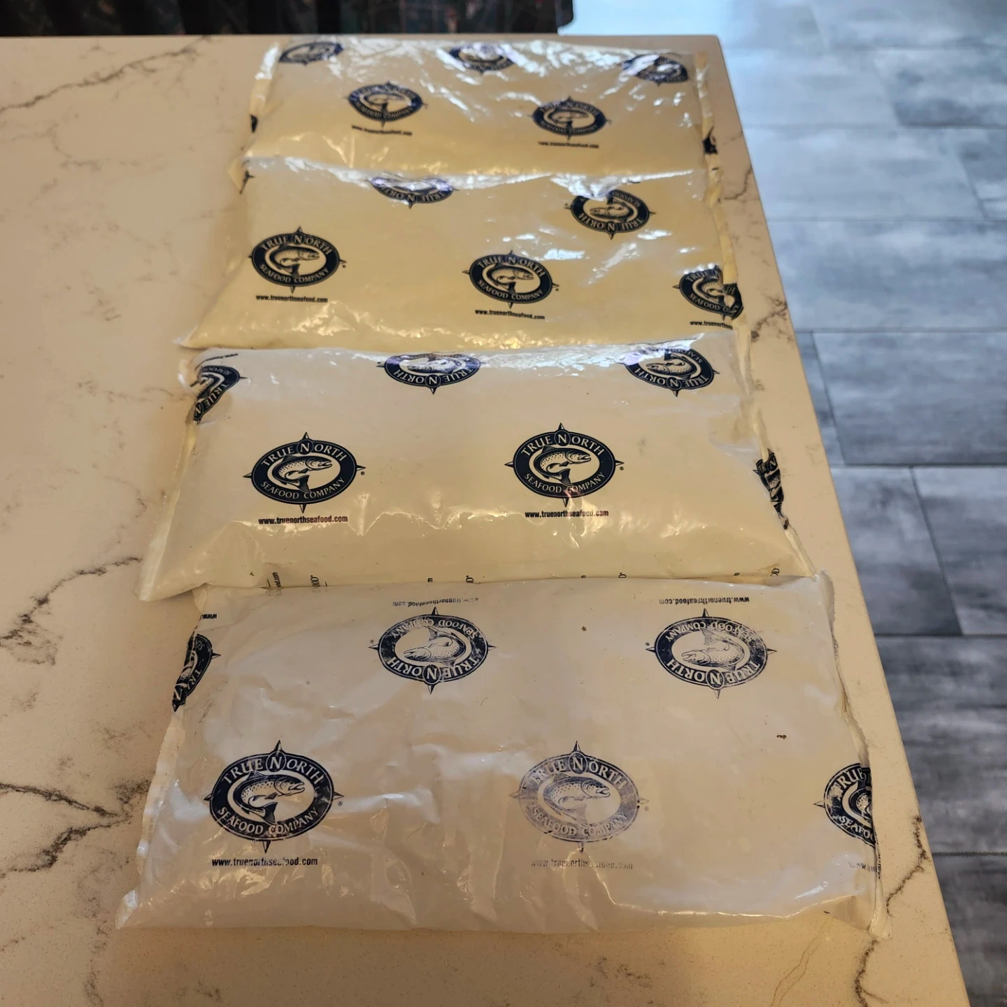 Used four ice packs from True North Seafood Company. They're useful for keeping food or drinks cold during transport. Great for picnics or beach days!