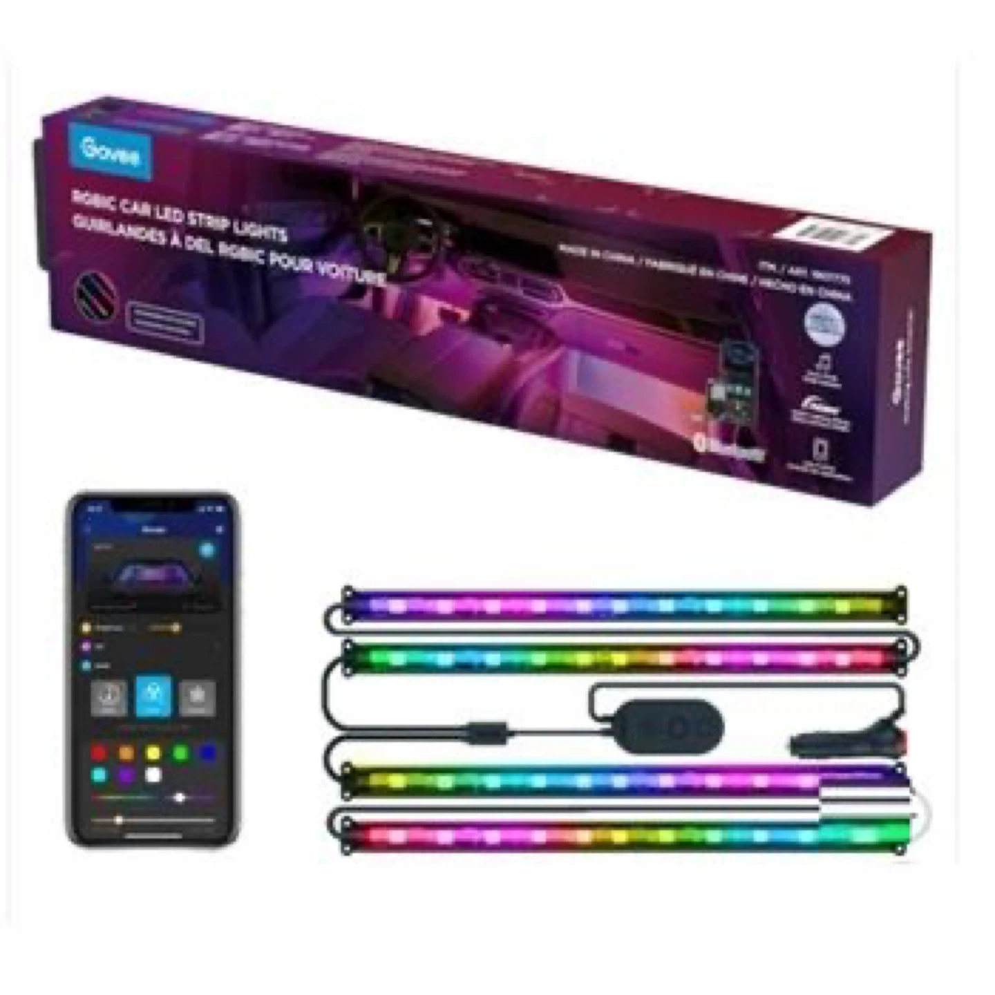 Govee RGBIC car LED strip lights for interior accent lighting. Includes multiple light strips and a control app for colour customization. Easy to install and use for a personalized driving experience.