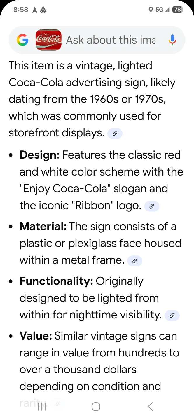 See other ads for more vintage Coca-Cola items including a 1950s Coca-Cola metal cooler
