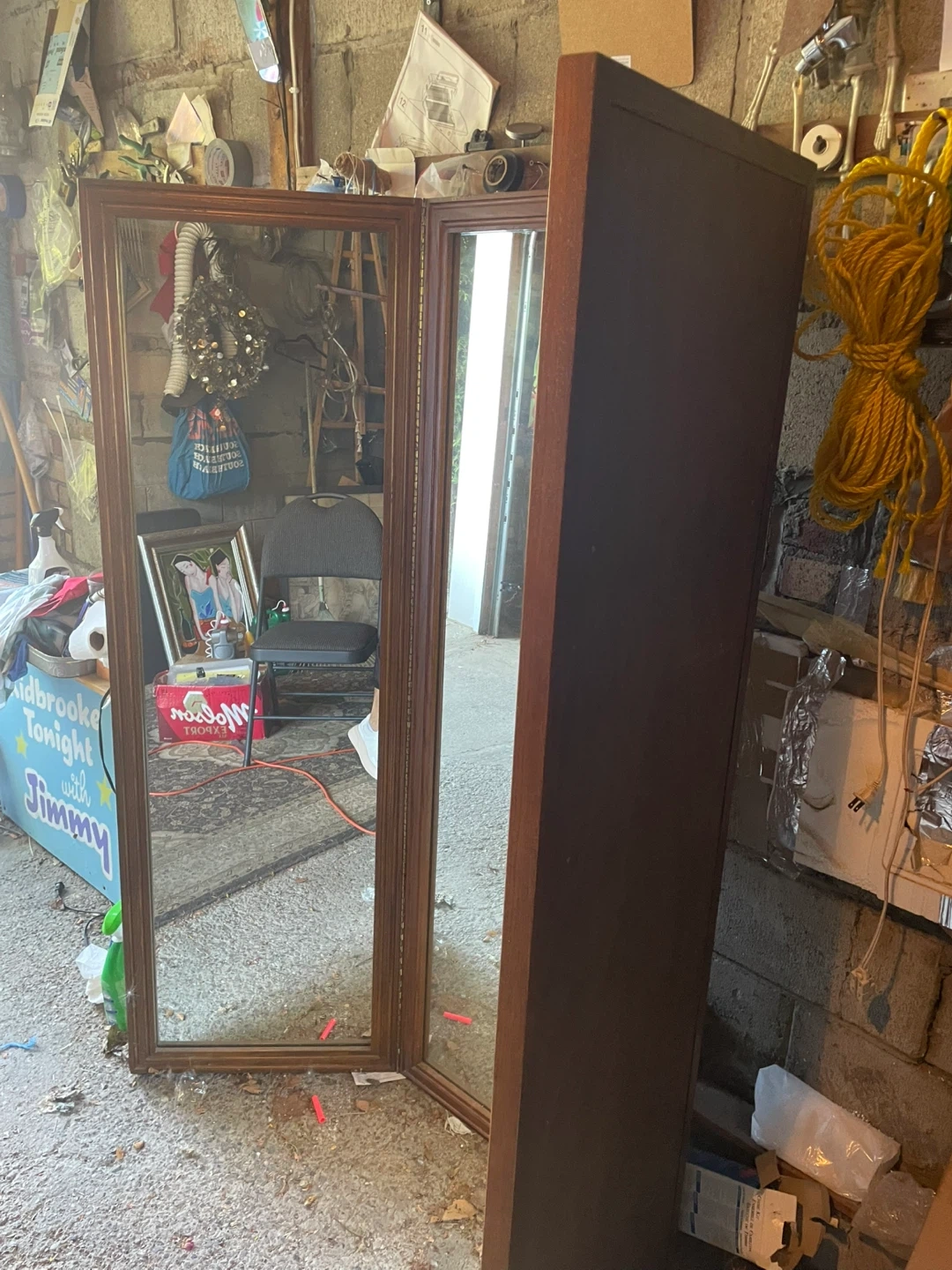 Selling a beautiful tri-fold vanity mirror! It's perfect for adding a touch of elegance to your dressing area or bedroom. The mirror is in good condition and ready to find a new home.