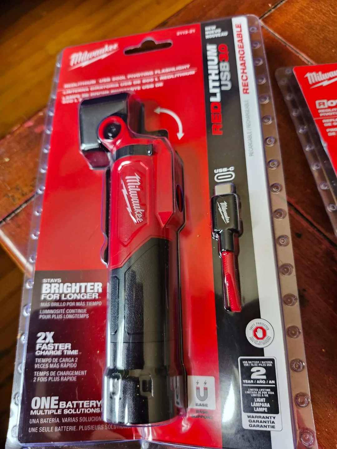 This is a new Milwaukee REDLITHIUM USB 3.0 pivoting flashlight. It stays brighter for longer and has 2x faster charge time. It's part of the ONE KEY system for battery solutions. USB-C rechargeable.