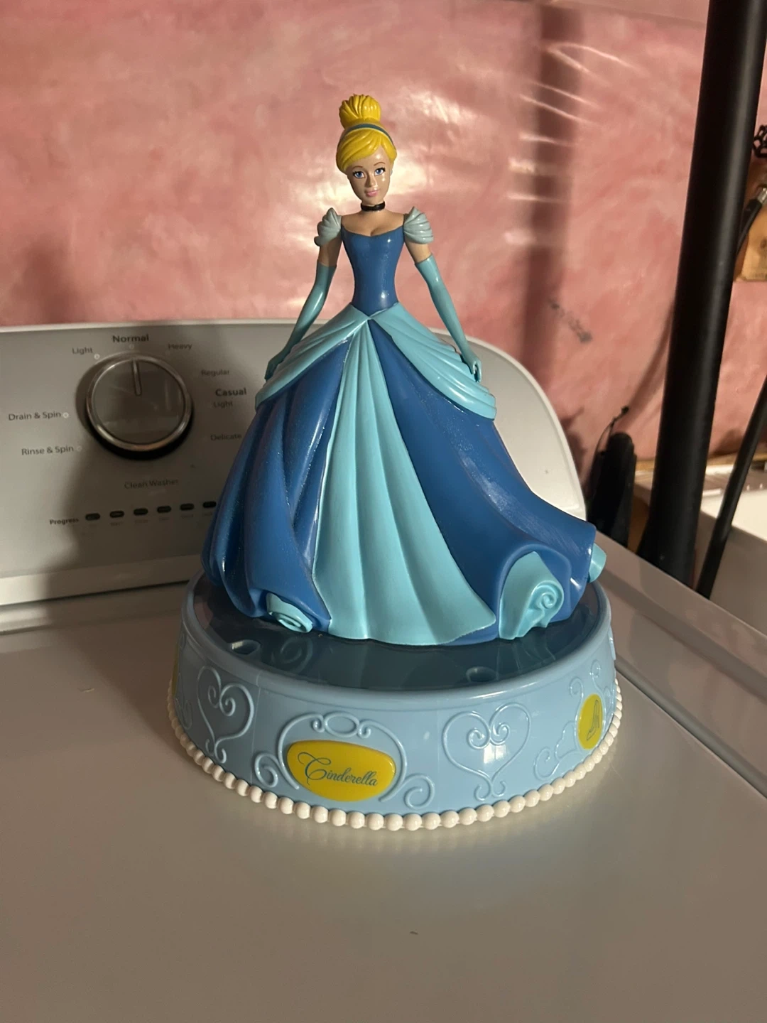 A lovely Cinderella figurine! It features Cinderella in her iconic blue dress on a decorative base. Perfect for any Disney fan or collector and is also a piggy bank