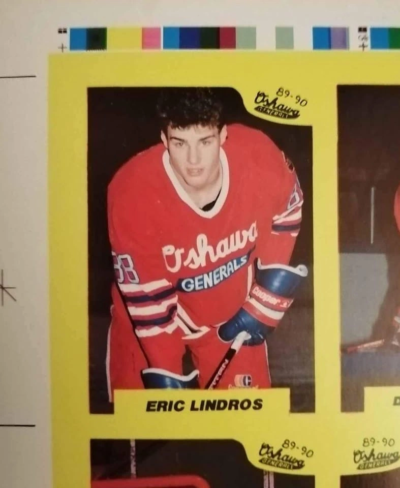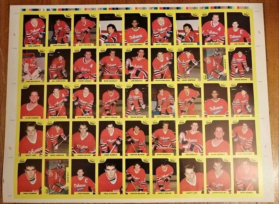 Rare Limited Print of 1989-90 7th Inning Sketch Hockey Cards! Uncut Oshawa Generals Team Set Sheet. 45 total cards. Sheet #96 of 400. Eric Lindros Pre-Rookie Card. A rare 35 year old piece of hockey memorabilia!