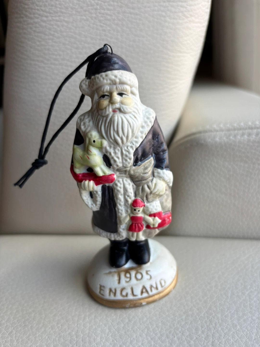 This is a Santa Claus ornament. It's dated 1905 and says England. It's made in China. Stands 5 inches.