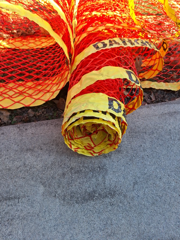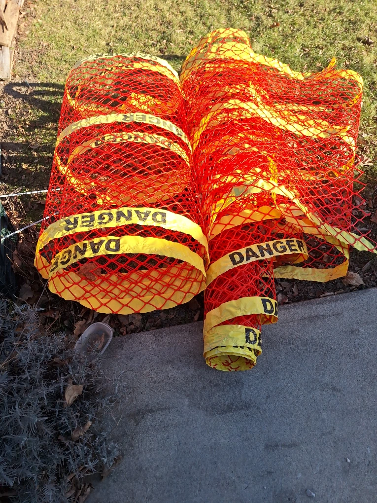 Bright orange and yellow safety netting. Ideal for construction sites or hazard zones. Rolls are partially unfurled. Sold as is.