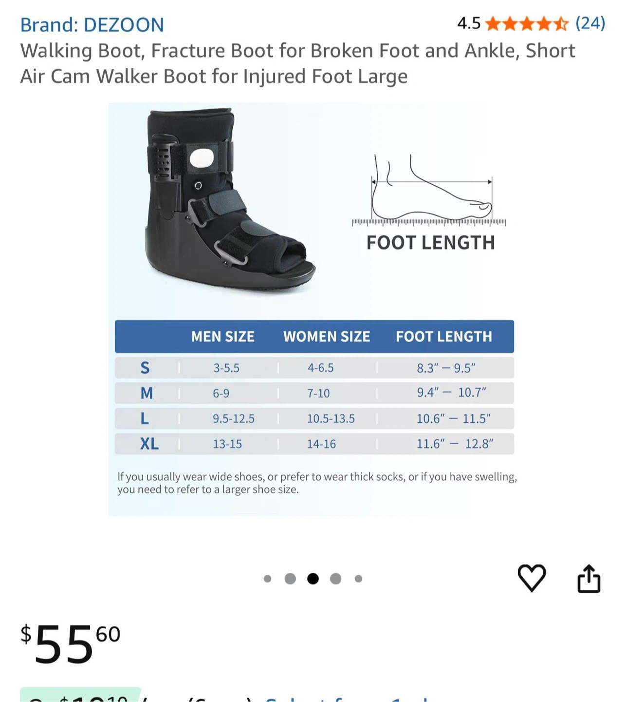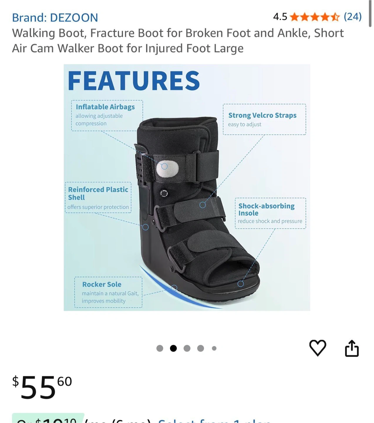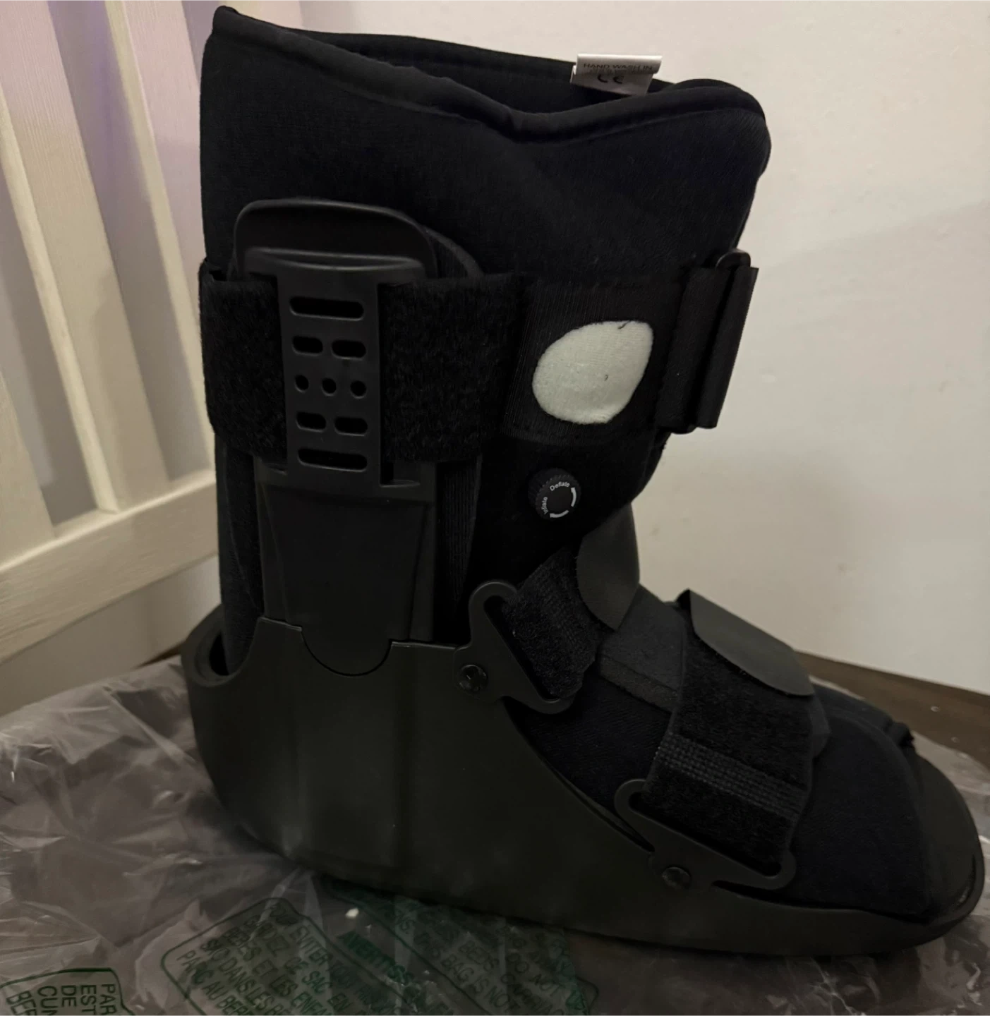 This is a black walker boot, size large. It features adjustable straps and a non-slip sole for stability. Includes application instructions.