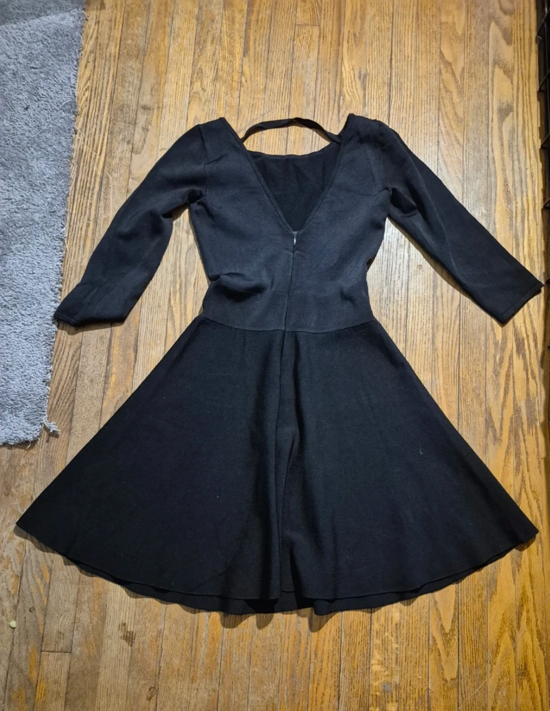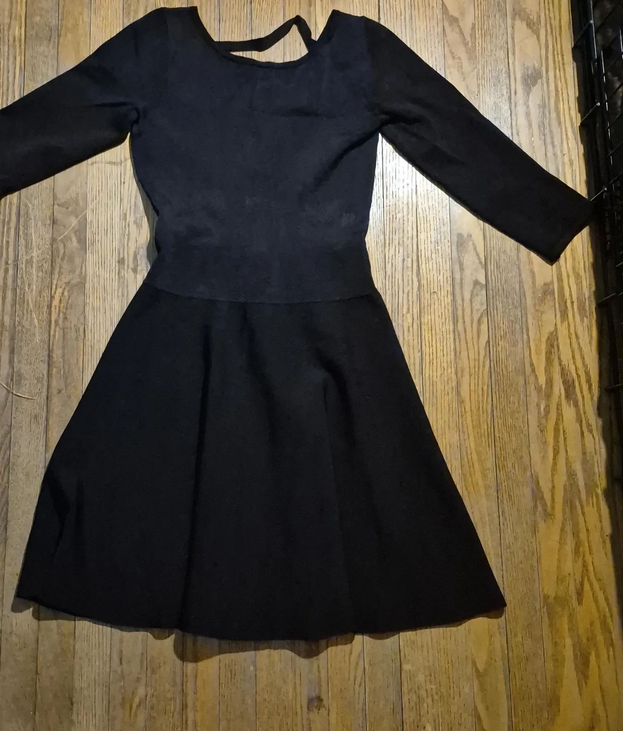Black long-sleeve skater dress with cutout back