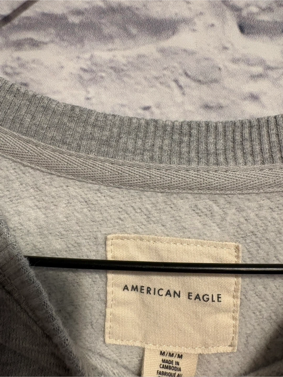 This is an American Eagle babydoll sweatshirt dress. It's a size medium and made of a soft grey material. It features gathered detailing at the waist and two side pockets. Excellent condition, pick up only.