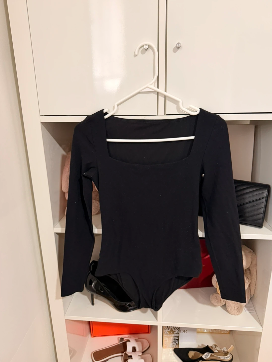 TNA Black Long Sleeve Square Neck Bodysuit