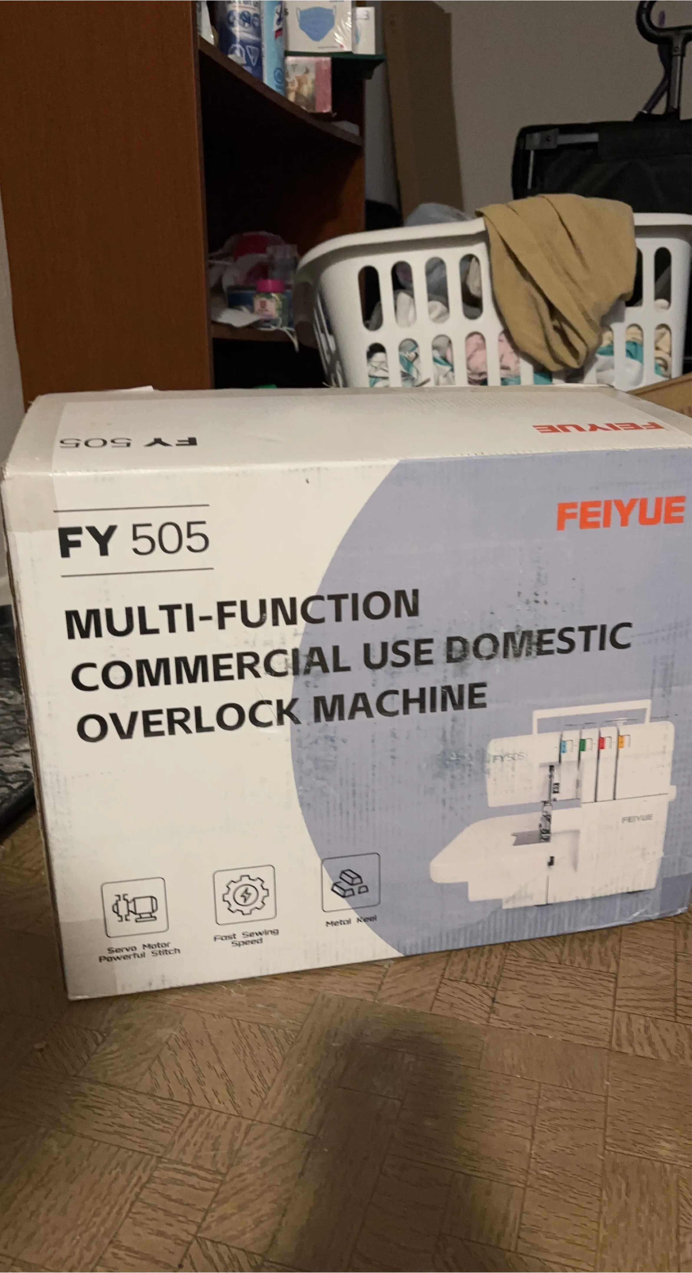 This FEIYUE FY 505 is a multi-function overlock machine suitable for both commercial and domestic use. It boasts a servo motor for a powerful stitch and fast sewing speed. Metal reel construction.