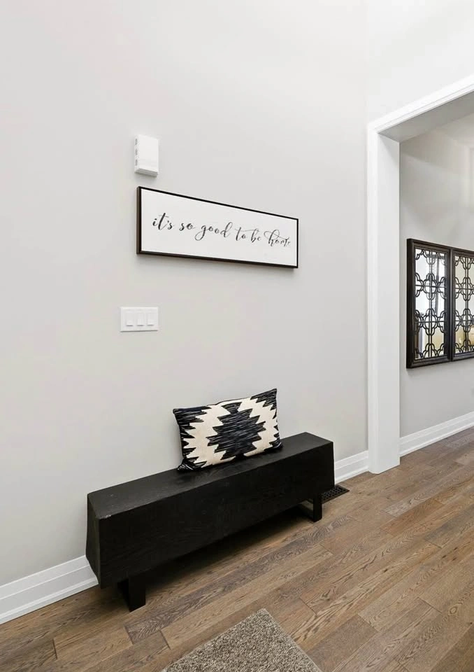 Get the rustic wood look in a durable, low-maintenance finish. Our Yves faux wood bench has all the texture and depth of the real thing in a striking black finish. Balanced on metal legs, this modern rustic bench is perfect for the foot of your bed, entryway or a versatile extra surface in small spaces.