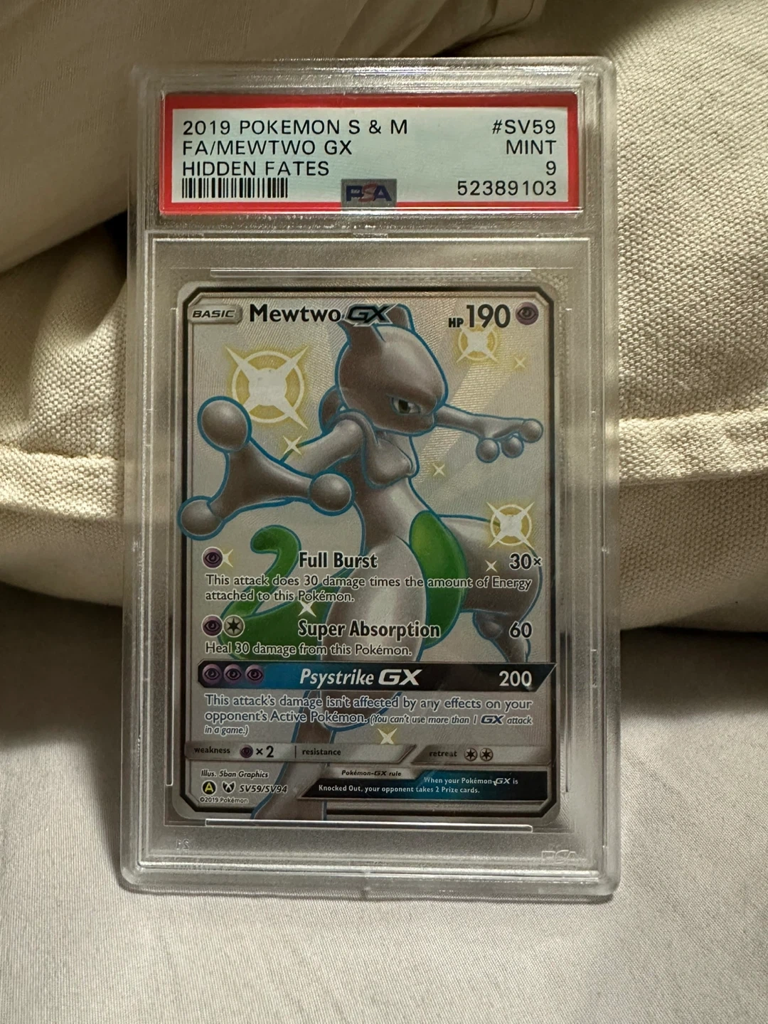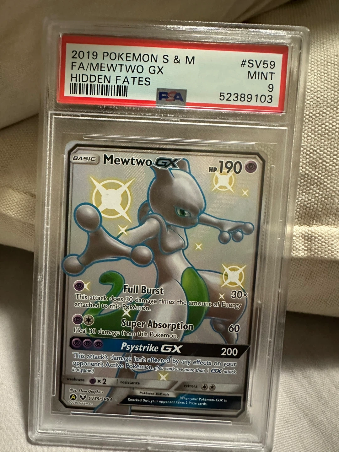 2019 Pokemon Mewtwo GX Hidden Fates FA Mint 9 PSA Graded Card